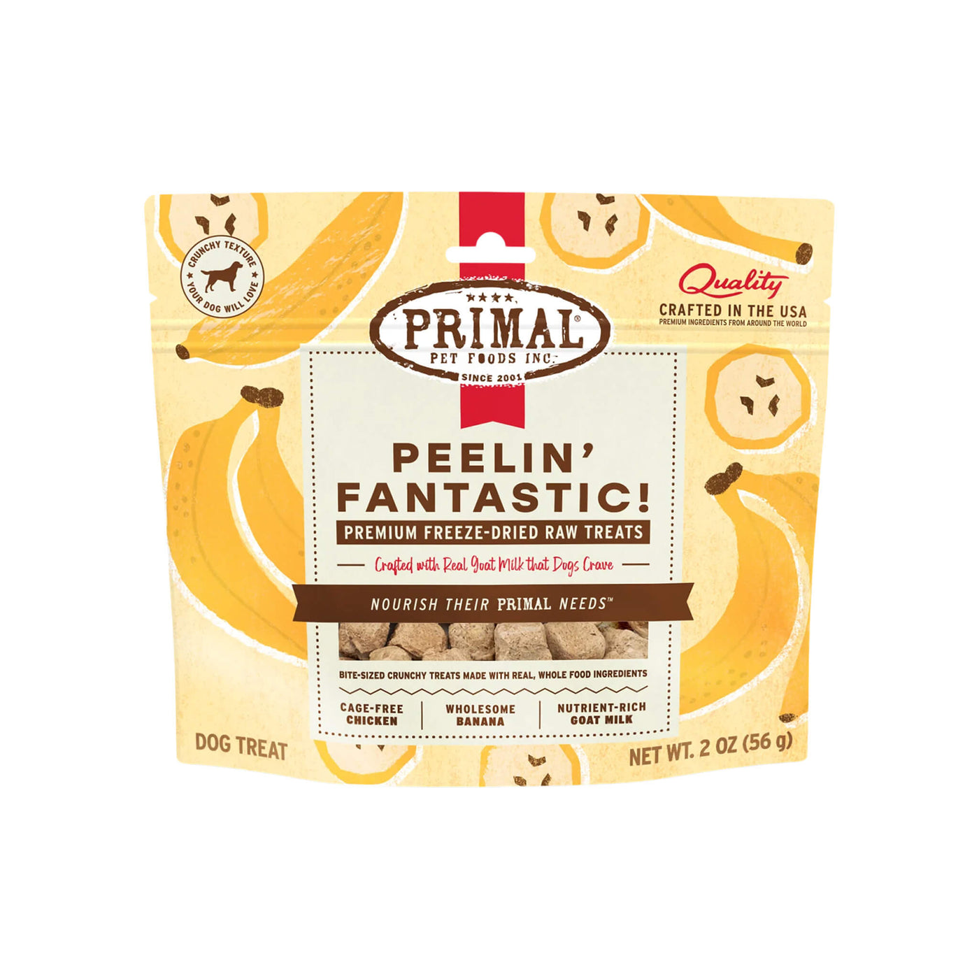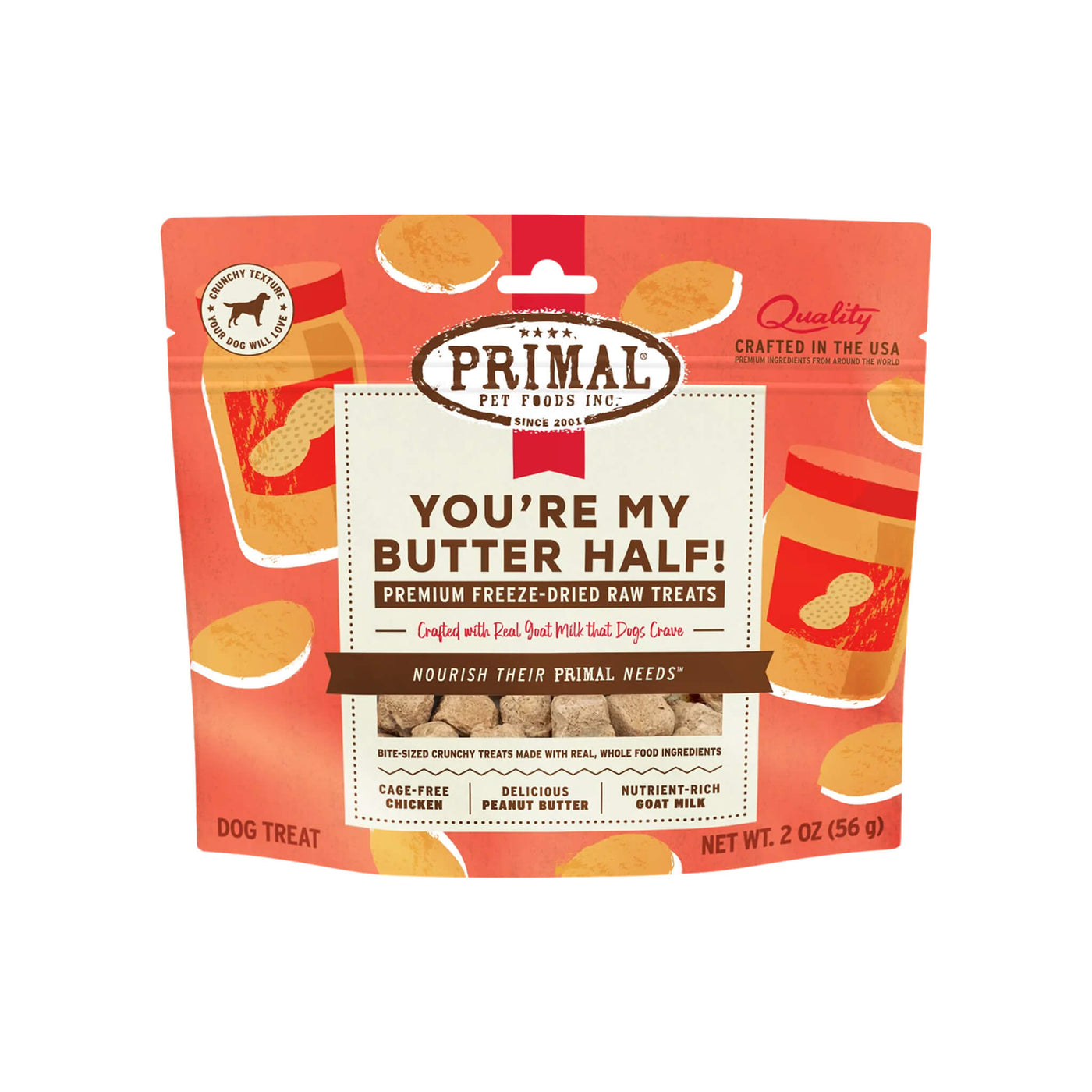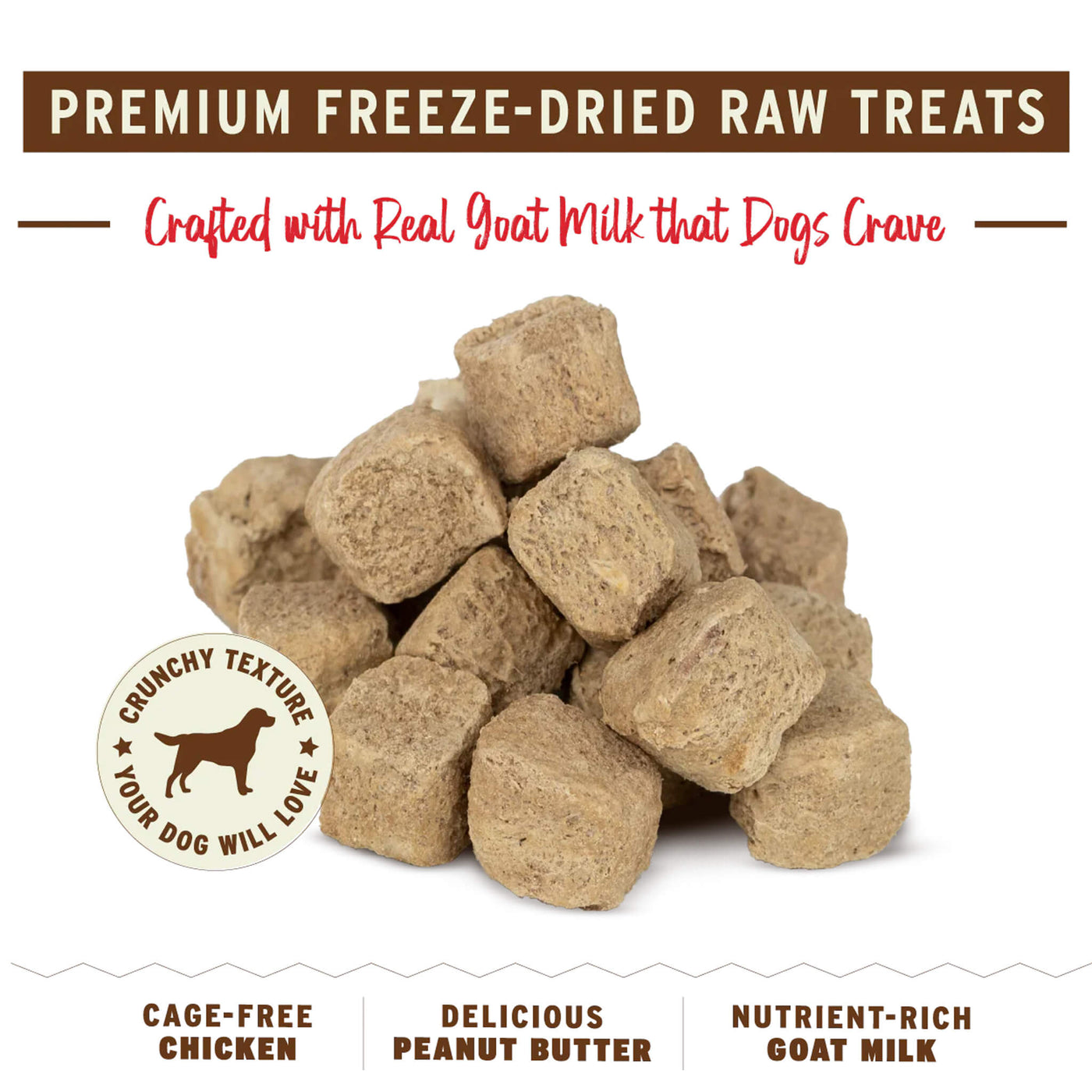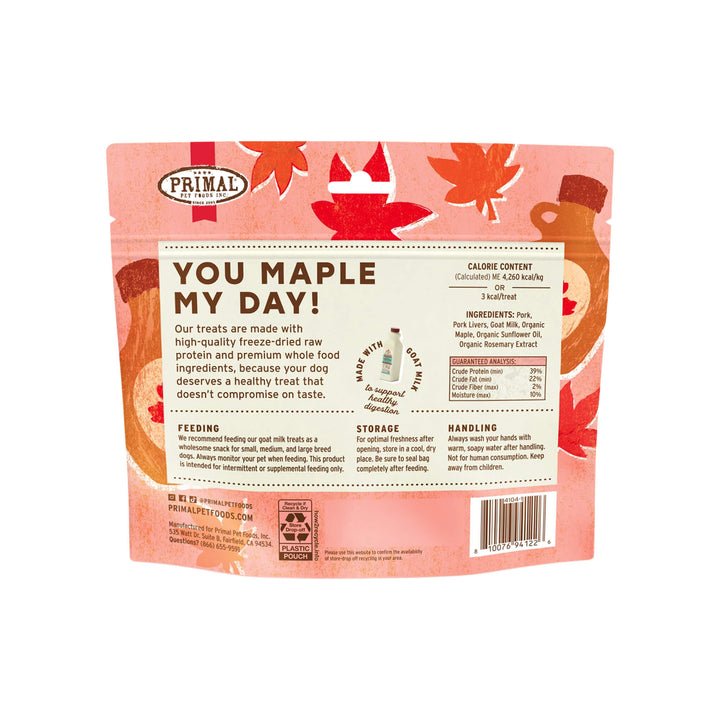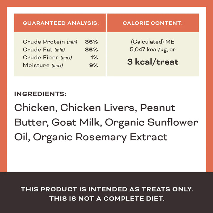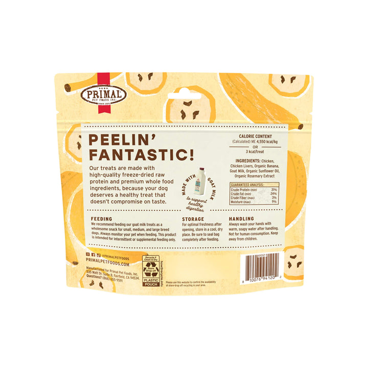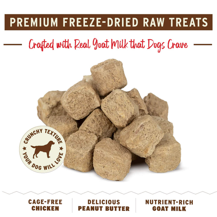 Primals' freeze dried dog treats with probiotics are crafted in the USA using ethically raised chickens and pigs. These freeze dried treats are made with goat milk and gently freeze dried, maintaining the nutrients your dog craves.