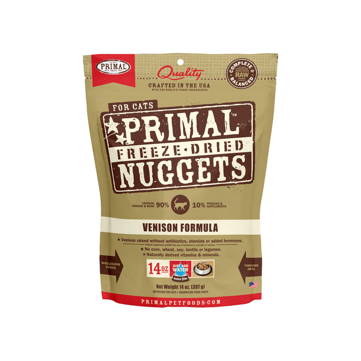 Primal freeze-dried nuggets deliver the benefits of raw feeding in a convenient, shelf-stable format. Made with high-quality, human-grade meats, organic produce, and unrefined vitamins and minerals, each recipe supports optimal feline health without synthetic additives. Fresh ground bone provides natural calcium to aid digestion and muscle maintenance. Just portion, crumble, hydrate, and serve for a nutrient-rich meal tailored to your cat’s ancestral diet. Primal cat food makes raw feeding easy and nutritious, ensuring your feline friend thrives with every bite. Explore more options of Freeze-Dried Cat Food and give your feline a diet as close to nature as possible.