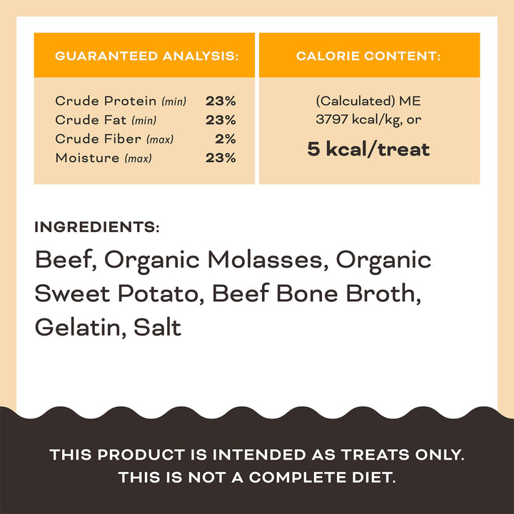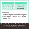 Crafted with cage-free chicken or grass-fed beef, organic sweet potato, and bone broth