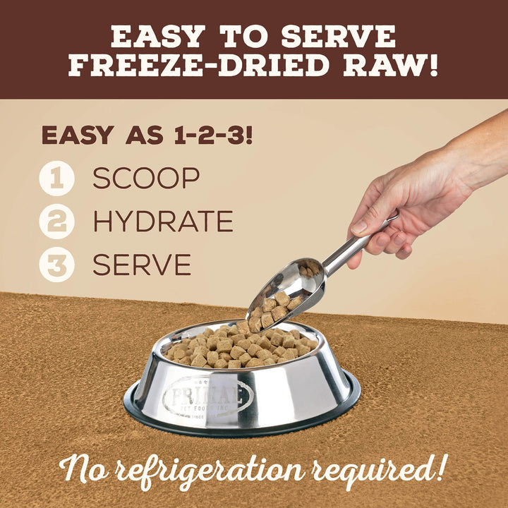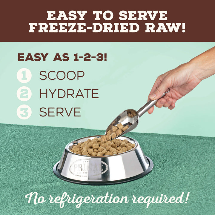 Quick-serve freeze-dried raw format makes feeding a raw diet simple and fast