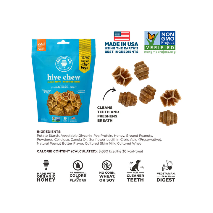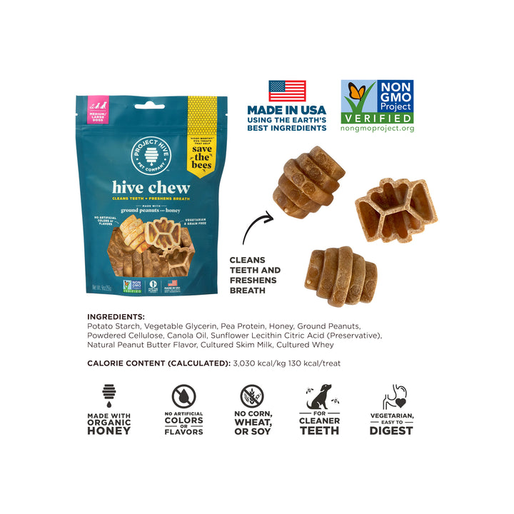 Project Hive Chew Treats are crunchy dog chews offering mouth-watering taste for your dog. Made with no artificial colors or flavors, these grain-free, vegetarian chew treats offer all of the health and nutrition you expect.