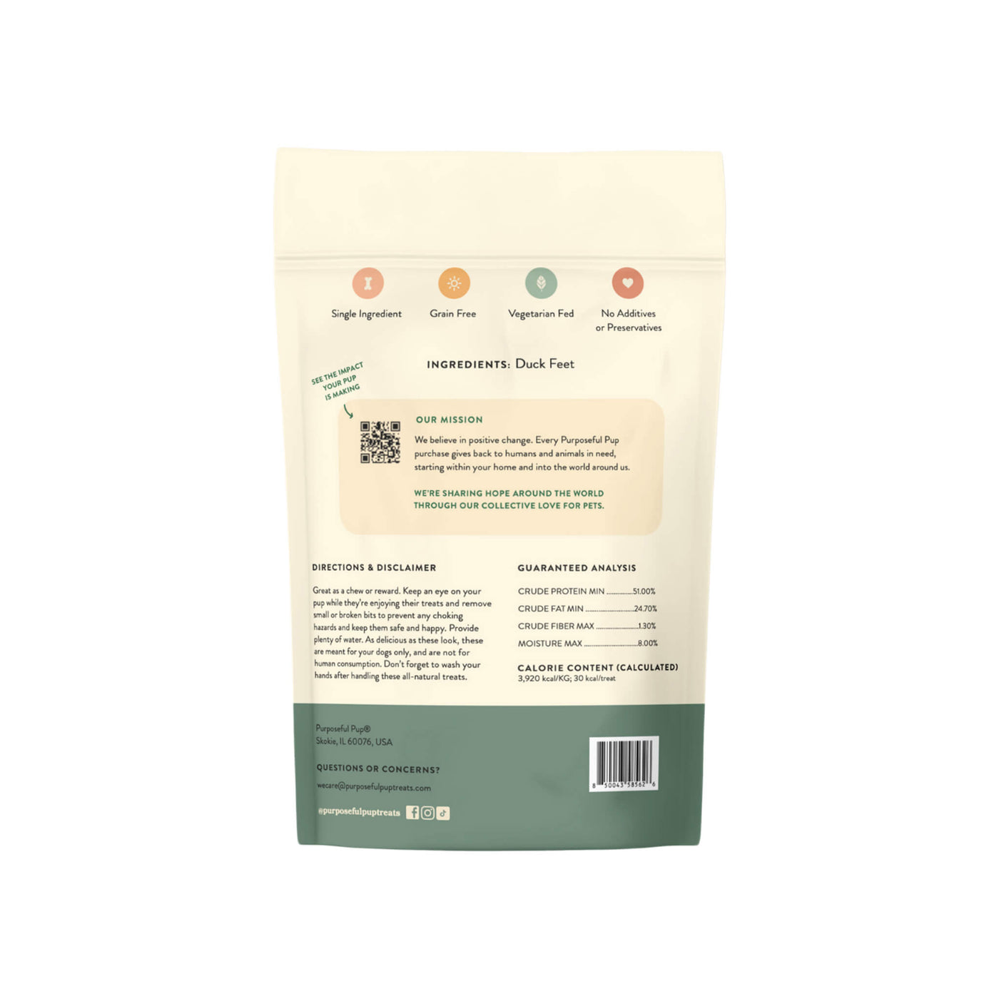 Reward your pup with Purposeful Pup Duck Feet Dog Treats—slow cooked crunchy duck feet for dogs that combine natural flavor, texture, and nourishment.