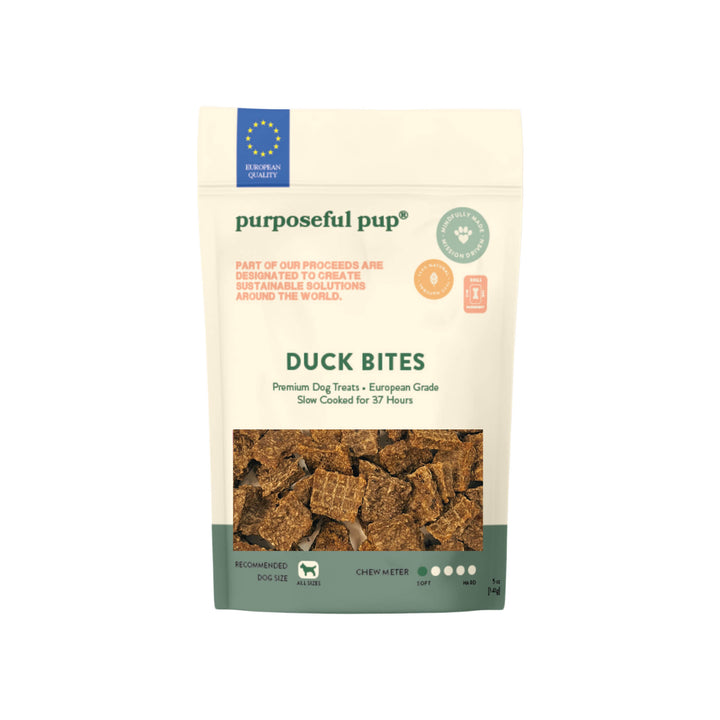 Purposeful Pup Slow Cooked Meat Bites for Dogs are wholesome, protein-packed snacks made from real meat. These single ingredient meat treats for dogs are slow cooked to preserve natural flavor and nutrients, offering a simple and delicious way to reward your pup.