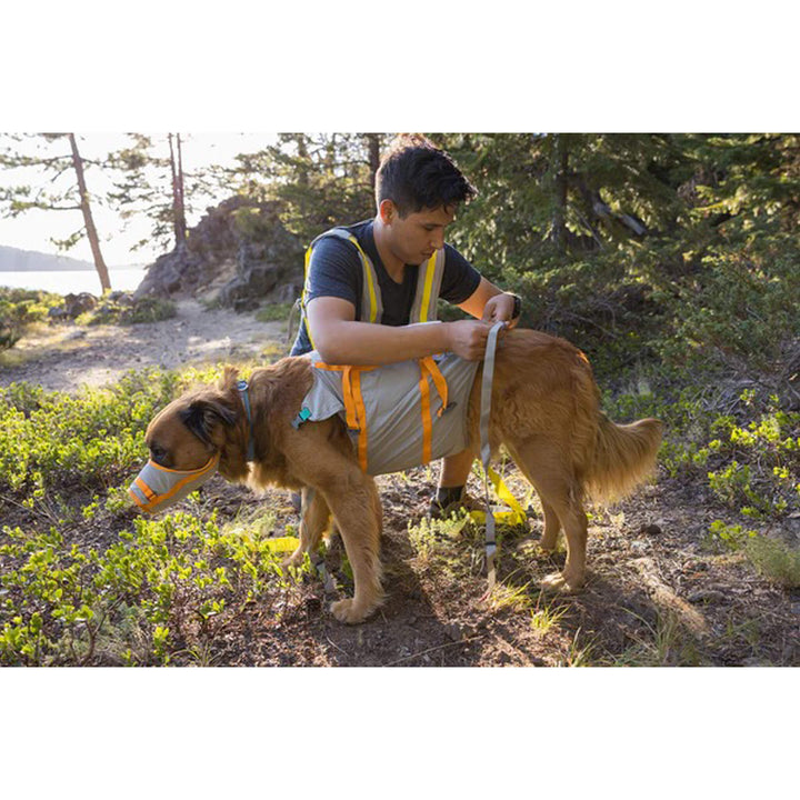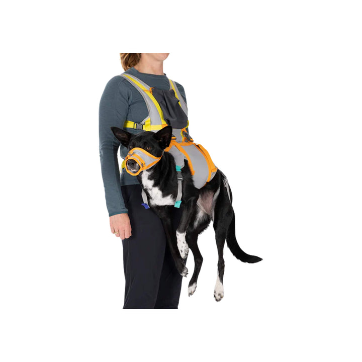 The Ruffwear BackTrak Dog Evacuation Kit is designed for unexpected situations when your dog can’t make it back on their own. This emergency dog carrier sling combines a human vest with a built-in dog sling and a lightweight first-aid muzzle, giving you a reliable way to transport your pup safely. Adjustable straps and supportive webbing help distribute weight evenly, so you can carry your dog in front or back with confidence.