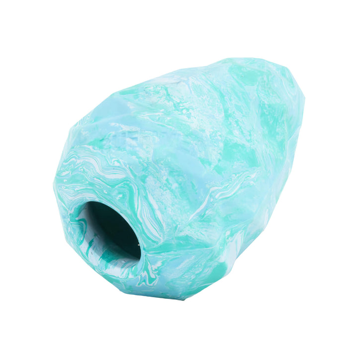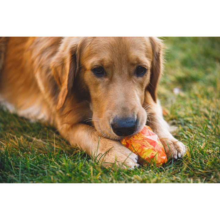 This peanut butter dog toy is made from natural latex rubber that is resilient as well as being a renewable resource. If you are using the Gnawt a Cone as fetch toy it's erratic bounce will keep your dog guessing. The inner chamber of this peanut butter toy is easy to clean after your dog is done with it, so no fear of your dog's toy getting so gross that it has to be tossed.