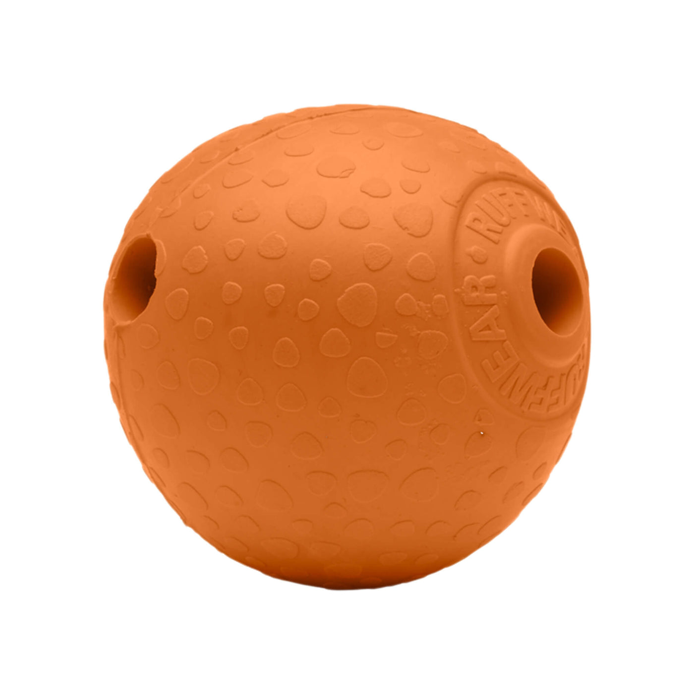 The Ruffwear Huckama Toy is a durable and interactive dog toy that erratically rolls and bounces due to it's shape. The rubber dog toy is hollow and can be filled with food or treats for a great reward for your dog while they play. This interactive dog toy is made from natural latex rubber, a renewable resource, so this is a great toy for your dog that you can feel good about.