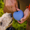 The Ruffwear Huckama Toy is a durable and interactive dog toy that erratically rolls and bounces due to it's shape. The rubber dog toy is hollow and can be filled with food or treats for a great reward for your dog while they play. This interactive dog toy is made from natural latex rubber, a renewable resource, so this is a great toy for your dog that you can feel good about.