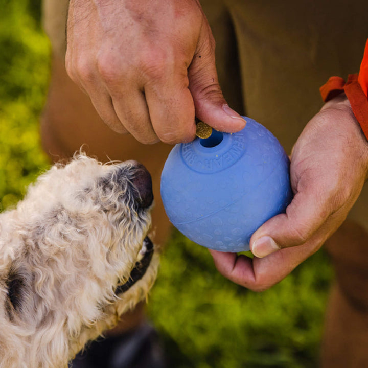 The hollow design of this fetch toy for dogs also creates a whistling noise when hurled through the air, keeping you and your dog entertained for hours. This dog ball is durable and chew-resistant so your dog can get to the treat without destroying the toy!