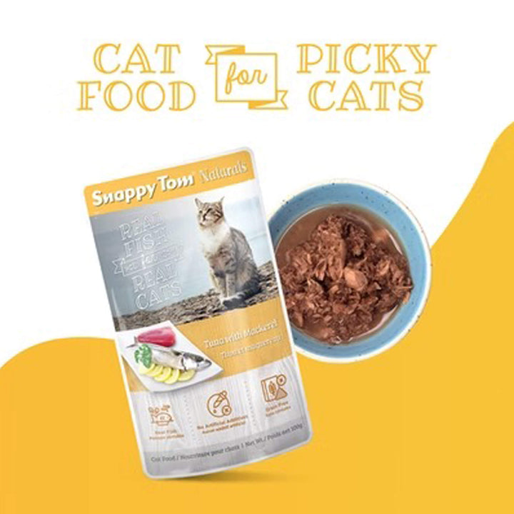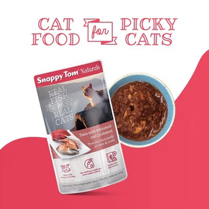 Snappy Tom is a cat food brand known for its seafood-forward recipes made to satisfy even the most discerning feline tastes. Originating in Australia, the brand focuses on crafting high-quality wet foods using real fish and meat ingredients to deliver natural flavor and texture cats love. Snappy Tom’s recipes are designed to be simple, palatable, and protein-rich, offering a mealtime experience that aligns with cats’ natural preferences. With an emphasis on quality ingredients and taste-driven nutrition, Snappy Tom provides cat parents with reliable options for everyday feeding and variety.