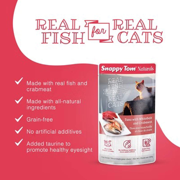 Snappy Tom Naturals Grain Free Wet Cat Food offers cats a hearty, stew-style meal made for everyday enjoyment. These high protein cat stew pouches deliver rich flavor and satisfying texture without grains or unnecessary fillers.