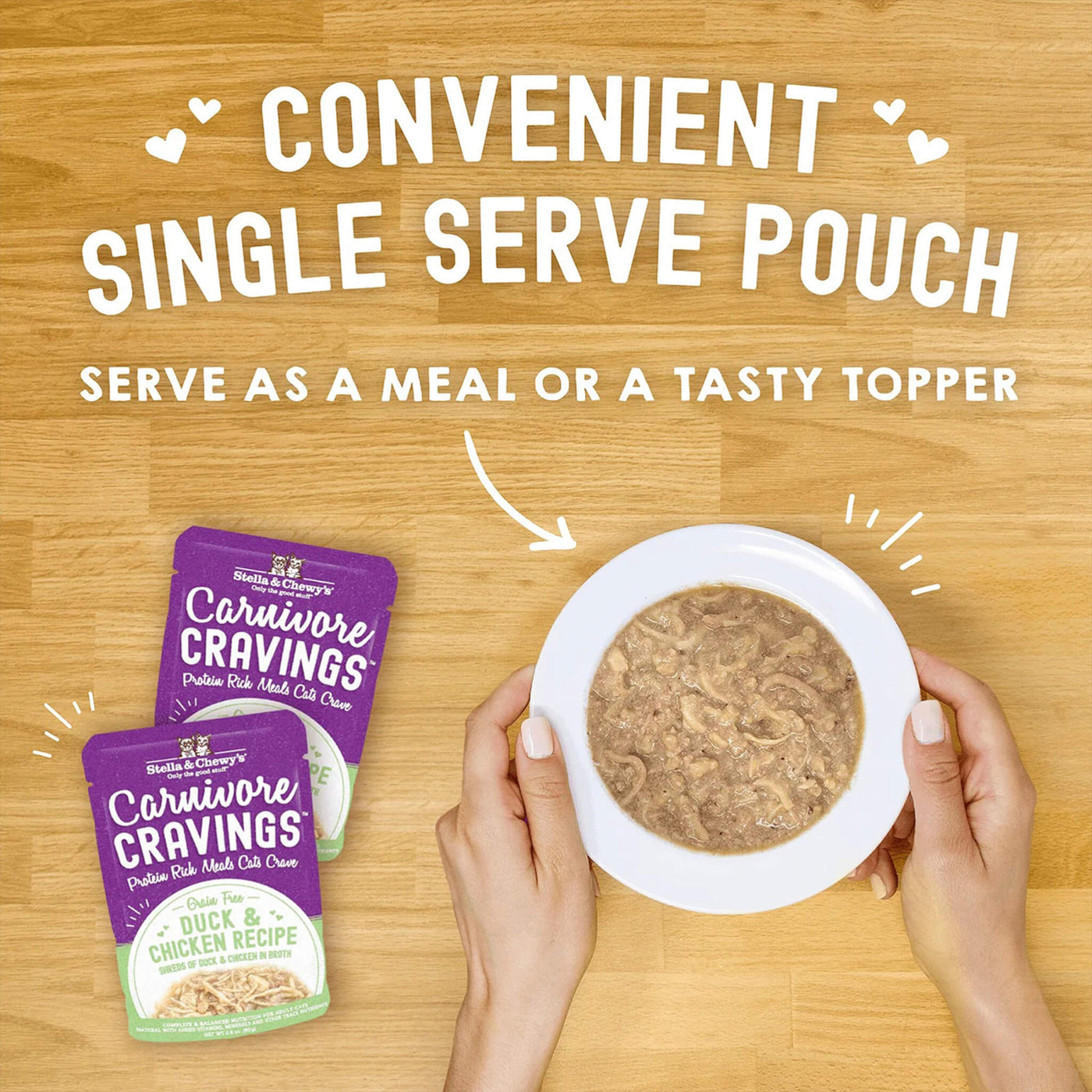 Stella & Chewy Carnivore Cravings Wet Cat Food is a pea-free, lentil-free and grain-free highly hydrating cat food. This food is meat packed featuring cage-free poultry and Wild Caught fish.
