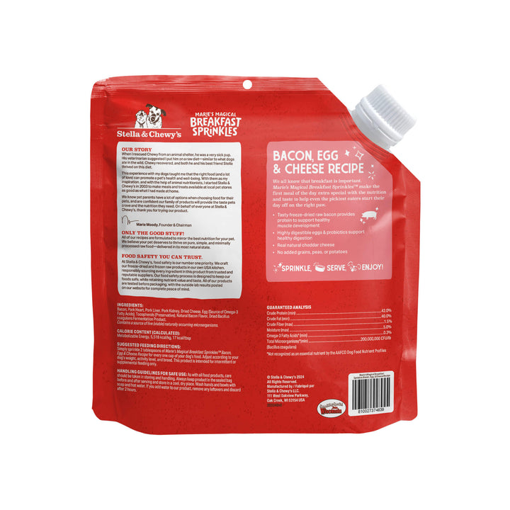Give your pup a nutritious start with Stella & Chewy's Breakfast Sprinkles, a premium freeze-dried topper for dogs packed with protein and flavor. Made with high-quality, responsibly sourced ingredients, this topper enhances every meal with essential nutrients, supporting digestion, energy, and overall well-being.