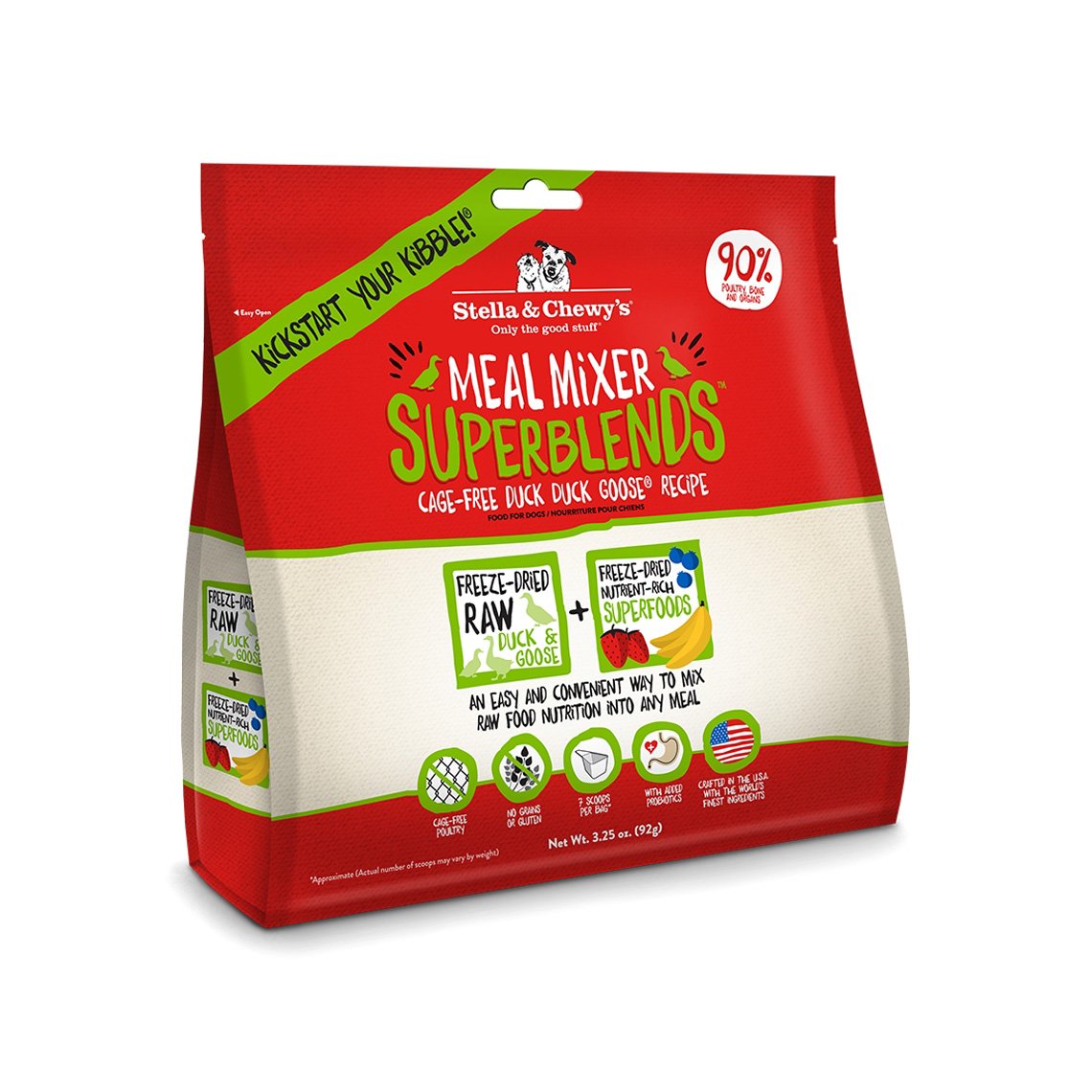 Packed with pure proteins and organic fruits and vegetables, Stella & Chewy's Superblends kickstarts kibble, making for a tasty topper with real, raw nutrition.Add a tasty topper to your dog's kibble with Stella & Chewy's Superblends Meal Mixer.