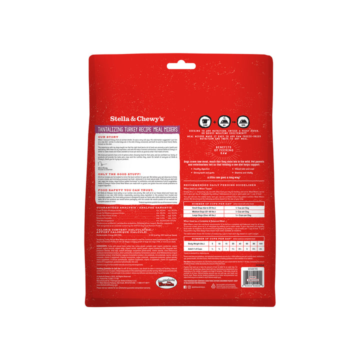 Stella & Chewy's Freeze-Dried Meal Mixers small shape allow them to be introduced into any kibble to give the added benefits of raw, like essential fatty acids and amino acids. Each recipe also features added probiotics for healthy digestion and is complimented with nutrient dense, antioxidant rich fruits and vegetables.