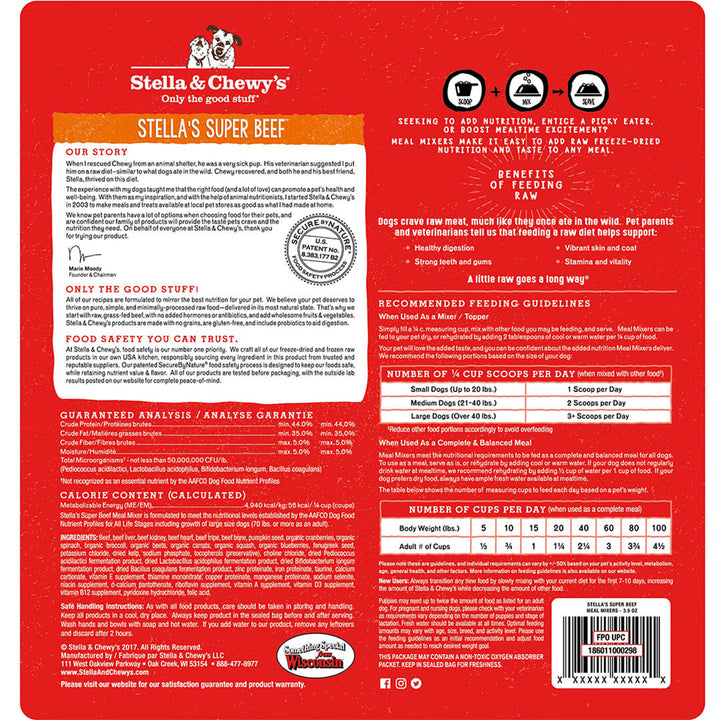 Adding a nutritional boost and delicious taste to your dog's kibble has never been easier thanks to the grain-free Stella & Chewy's Freeze-Dried Meal Mixers Dog Food Toppers.