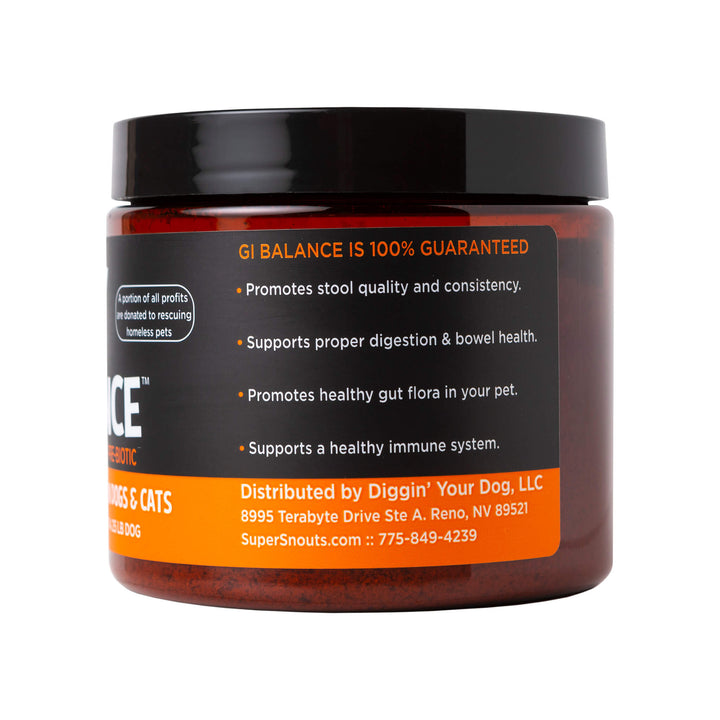 Diggin Your Dog Super Snouts G.I. Balance supports gastro-intestinal health and balance in your pet.