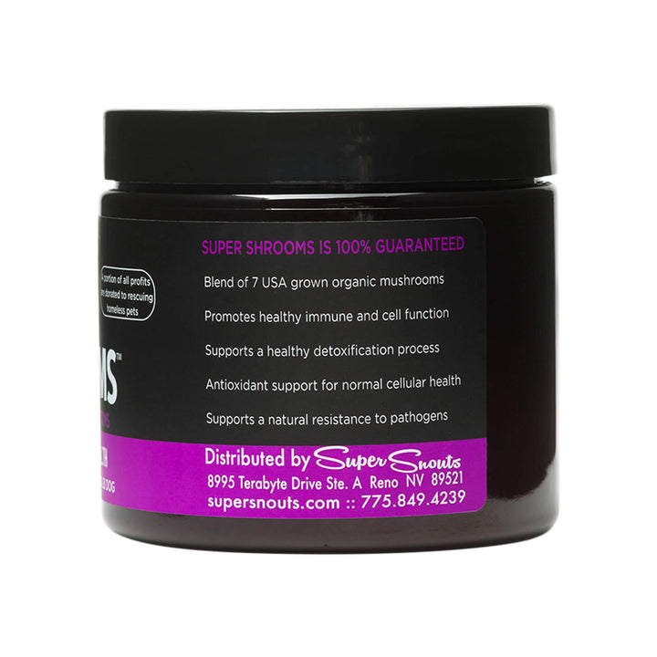 Super Snouts Super Shrooms is a unique blend formulated with 7 medicinal mushrooms that support a healthy immune system.