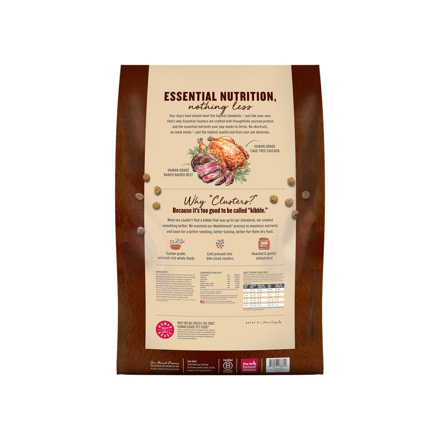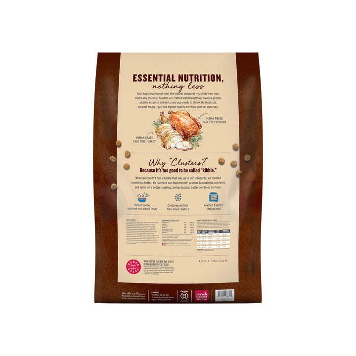 Feed your pup The Honest Kitchen Essential Clusters Dry Dog Food—nutritious, cluster-style meals made with care from trusted whole grains.