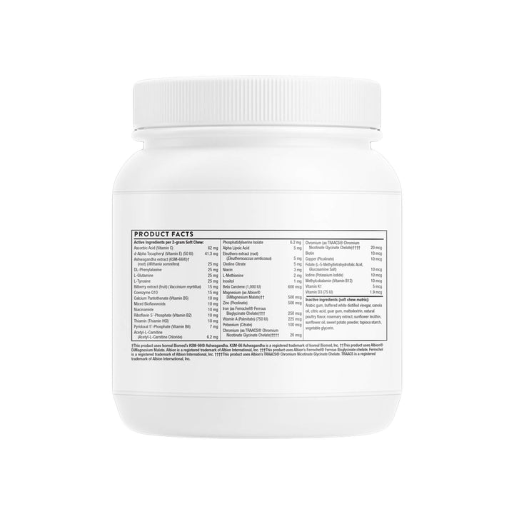 The aging process can impact various aspects of a dog's health, including cognitive function and vision. Canine Geriatric Basics is designed to support brain health by enhancing neurotransmitter production and preserving neuronal membrane integrity. Additionally, the inclusion of bilberry, known for its beneficial effects on vision, helps support eye health in aging dogs. Furthermore, adaptogenic botanicals like Eleutherococcus and ashwagandha are incorporated to help mitigate the physical and mental effects of stress, promoting overall well-being in older dogs. Trust in ThorneVET to provide the highest quality supplements for your beloved furry companion's health and well-being.