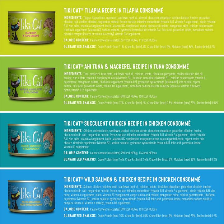 INGREDIENTS: Tilapia, tilapia broth, mackerel, sunflower seed oil, olive oil, dicalcium phosphate, calcium lactate, taurine, potassium chloride, salt, choline chloride, magnesium sulfate, ferrous sulfate, thiamine mononitrate (vitamin B1), vitamin E supplement, niacin (vitamin B3), zinc oxide, vitamin A supplement, biotin, vitamin B12 supplement, copper amino acid chelate, manganous oxide, calcium pantothenate, riboflavin supplement (vitamin B2), sodium selenite, pyridoxine hydrochloride (vitamin B6), folic acid, potassium iodide, menadione sodium bisulfite complex (source of vitamin K activity), vitamin D3 supplement.