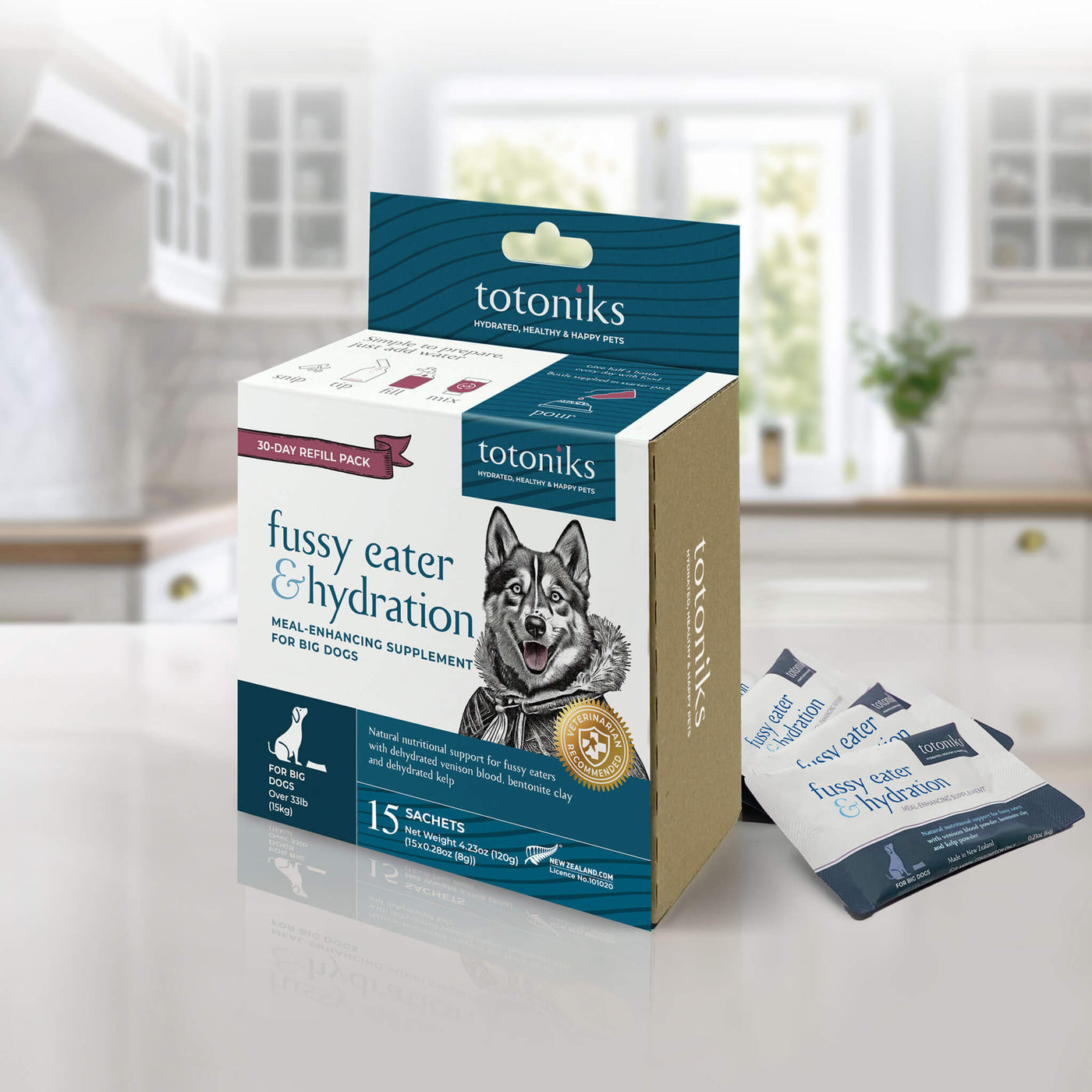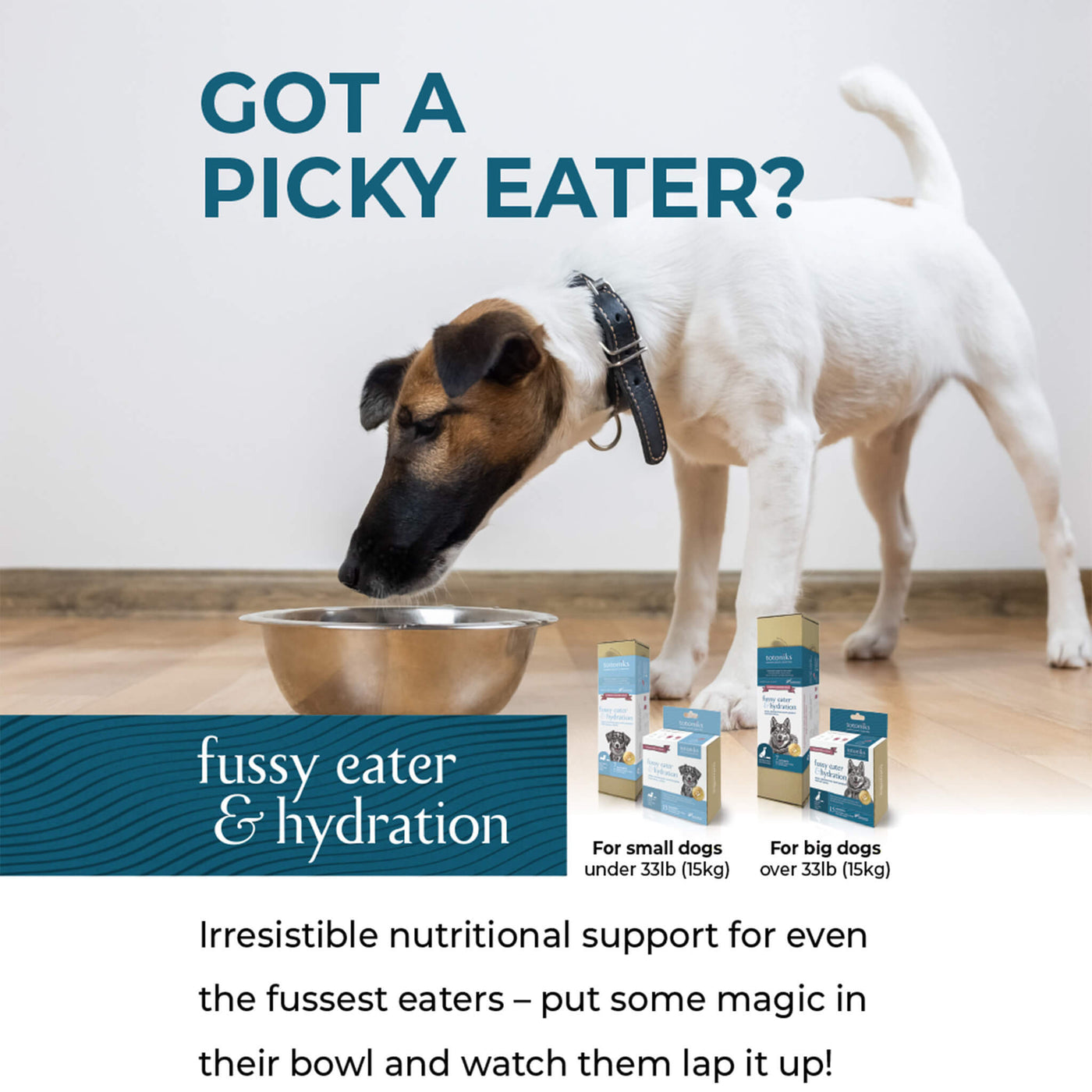 Entice your picky pup with Totoniks Fussy Eater Dehydrated Dog Food Topper—flavorful nourishment designed to make mealtime enjoyable.