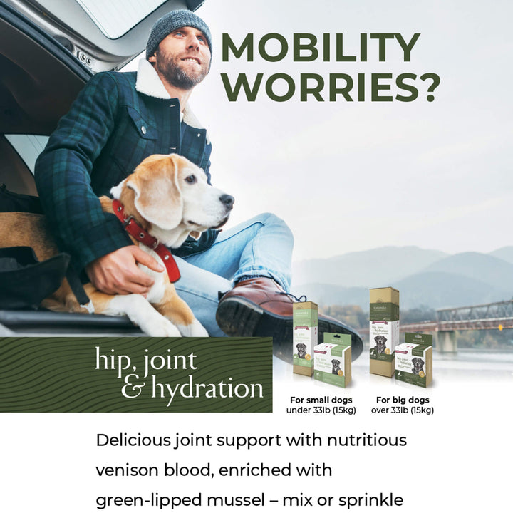 Totoniks Hip & Joint Support Dehydrated Dog Food Topper is made from nutrient-rich venison blood to provide natural support for mobility. These venison blood joint support food toppers for dogs add enticing flavor while delivering key nutrients that promote healthy joints.