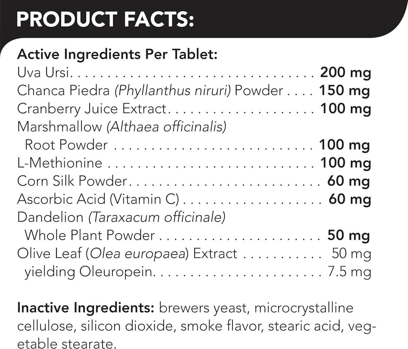 - Herbal & Nutrient Blend: Includes cranberry, chanca piedra, and vitamin C to support urinary tract function.