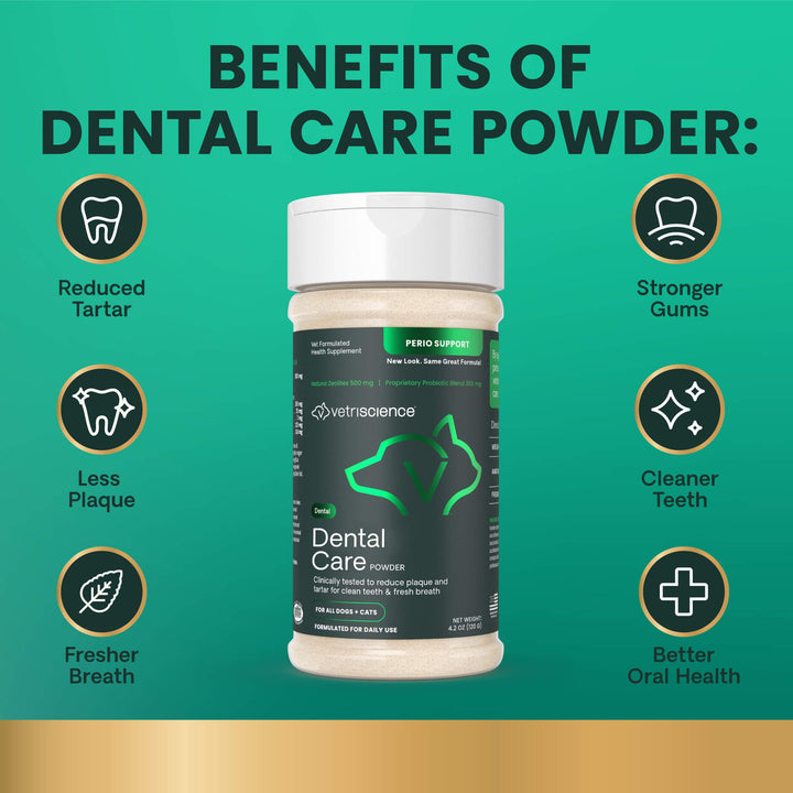Benefits of VetriScience Dental Care Powder Supplement for Dogs & Cats