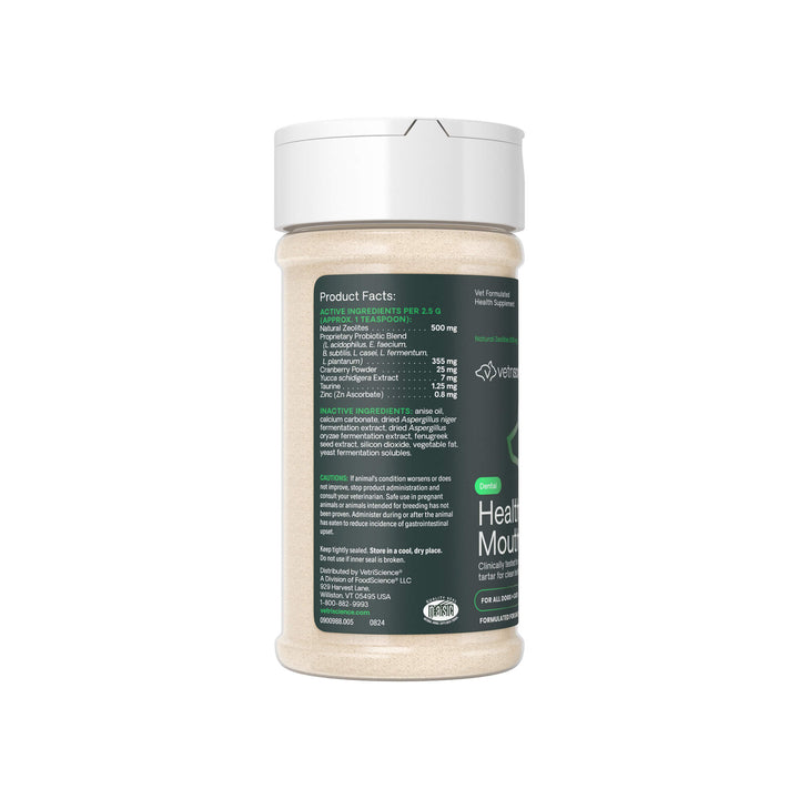 - Freshens Breath: Natural zeolites and probiotics combat bad breath.