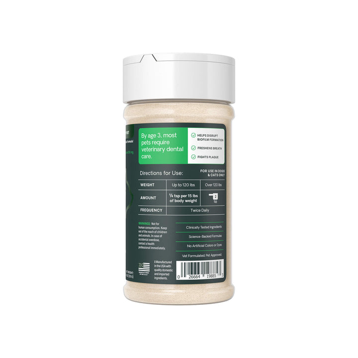 Tackle plaque and tartar without the struggle of brushing. Dental Care Powder is an easy-to-use supplement that mixes with food to support clean teeth and fresh breath. Designed for daily use, it features natural zeolites and probiotics to help reduce plaque buildup and manage bacteria in the mouth—perfect for pet parents looking for convenient dental support for dogs & cats.
