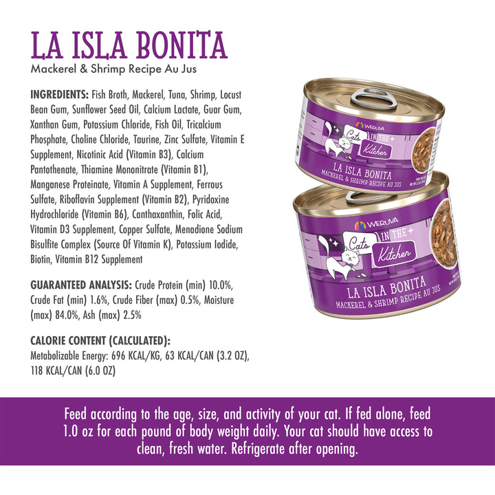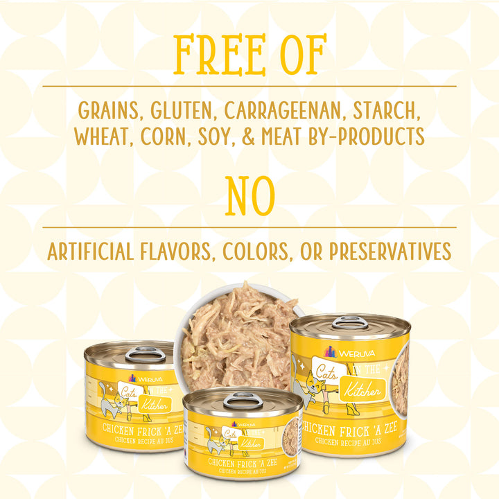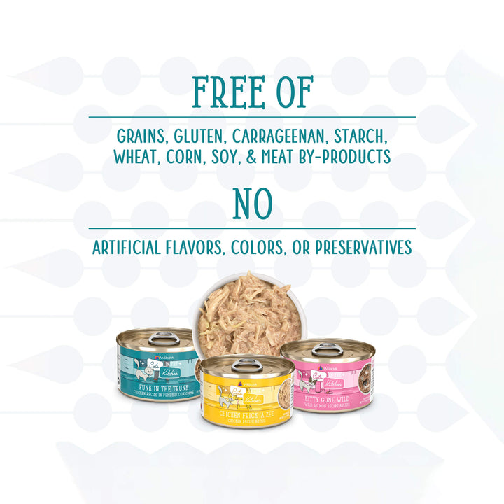 Weruva Cats in the Kitchen Grain-Free Cans are based on similar recipes from their best-selling pouches, your cat can find even more funky, delicious flavors. Every amazing, nutritious flavor of Weruva Cats in the Kitchen Grain-Free Cans features the quality ingredients you expect from Weruva, including prime cuts of human grade meat, like chicken, beef, lamb, and turkey, and fresh caught fish like tuna, salmon, sardines, mackerel, and ocean fish. These ingredients all combine to give your cat the high protein, low carb diet she needs to thrive.