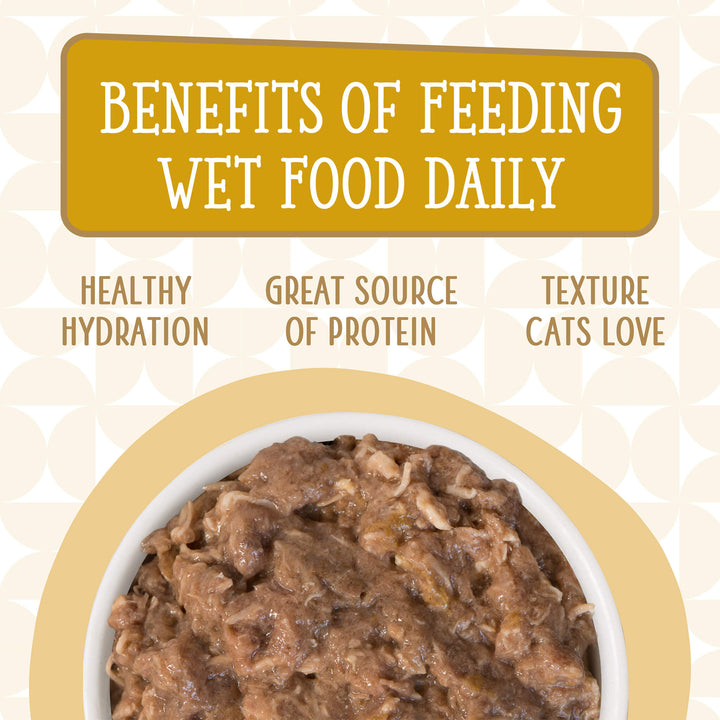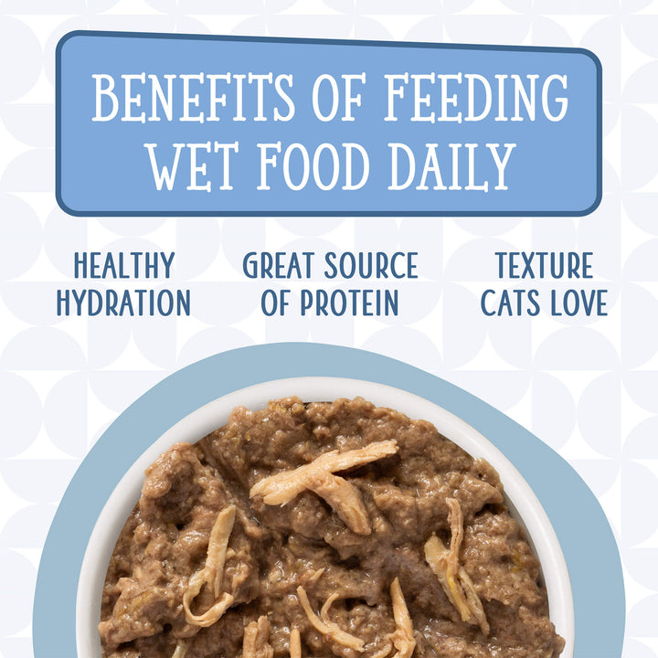 These 10, stylish and delicious flavors are all grain-free, carrageenan free, and starch free. This means they're species appropriate, with none of the grains, potatoes, peas, or other fillers found in conventional cat foods. The shredded texture with gravy is irresistible to your cat and the unique flavors are ideal for rotational feeding. Plus, the high moisture content will help keep your cat hydrated and healthy.
