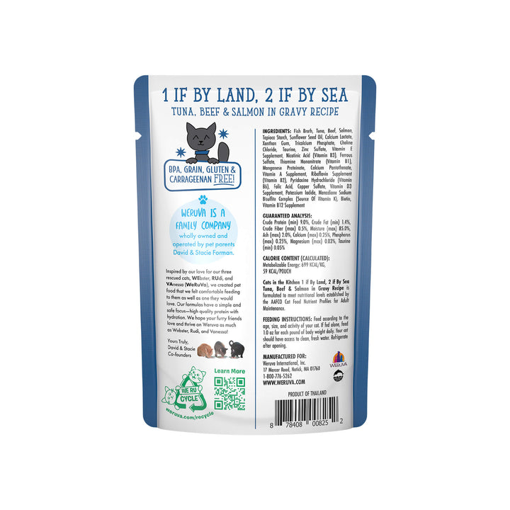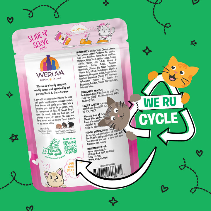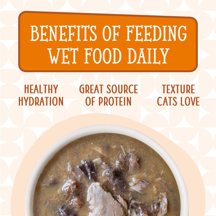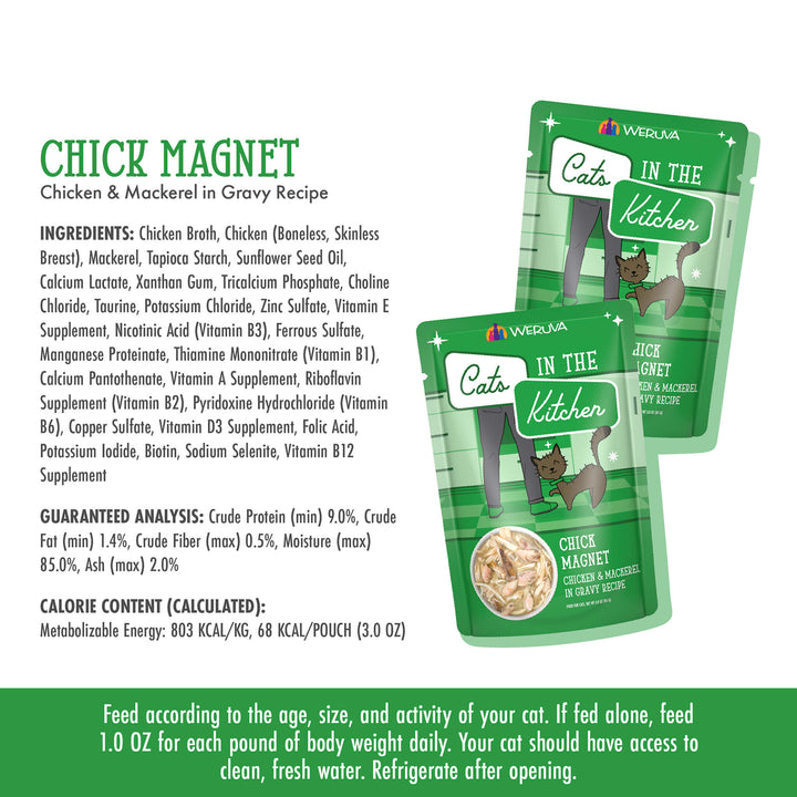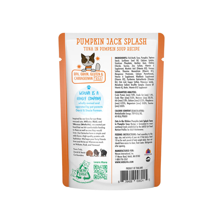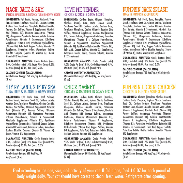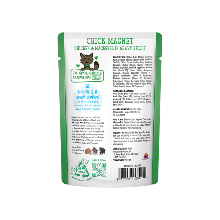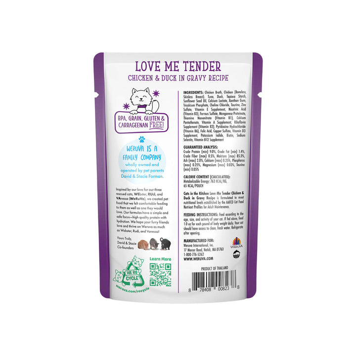 Turn every mealtime into a gourmet experience with Weruva Cats in the Kitchen, a line of protein-packed, moisture-rich meals designed for your kitchen carnivore. These grain-free recipes feature premium, boneless meats and wild-caught fish, providing the high-quality nutrition cats crave. With a variety of shredded textures and savory gravies, even the pickiest eaters will find something to love. Whether your cat enjoys Love Me Tender for a chicken and duck feast or Mack, Jack & Sam for a fish-forward meal, these pouches deliver flavor, hydration, and balanced nutrition.. Discover the full lineup of Weruva Cat Food and treat your cat to a menu as diverse as their personality.