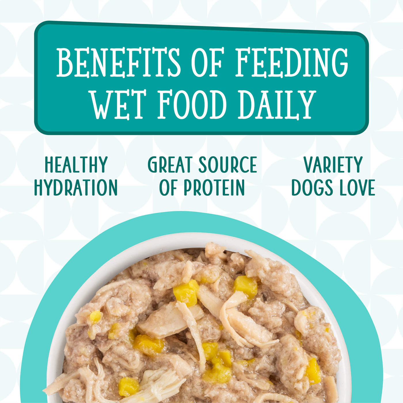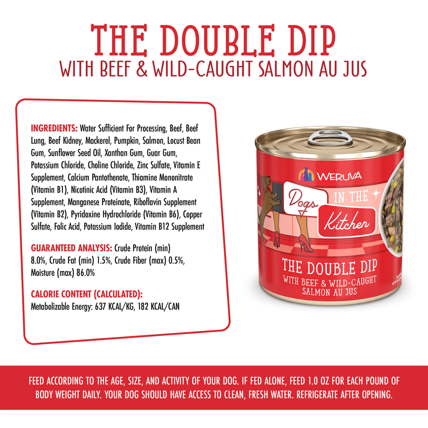 Weruva Dogs in the Kitchen Wet Dog Food was formulated to mimic what your dog would cook if they were in the kitchen. There is a variety of textures and flavors, land and sea proteins, healthy fats and high moisture content to keep your dog hydrated.