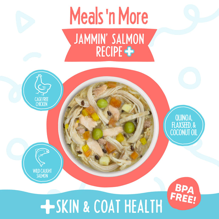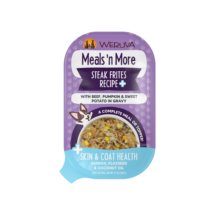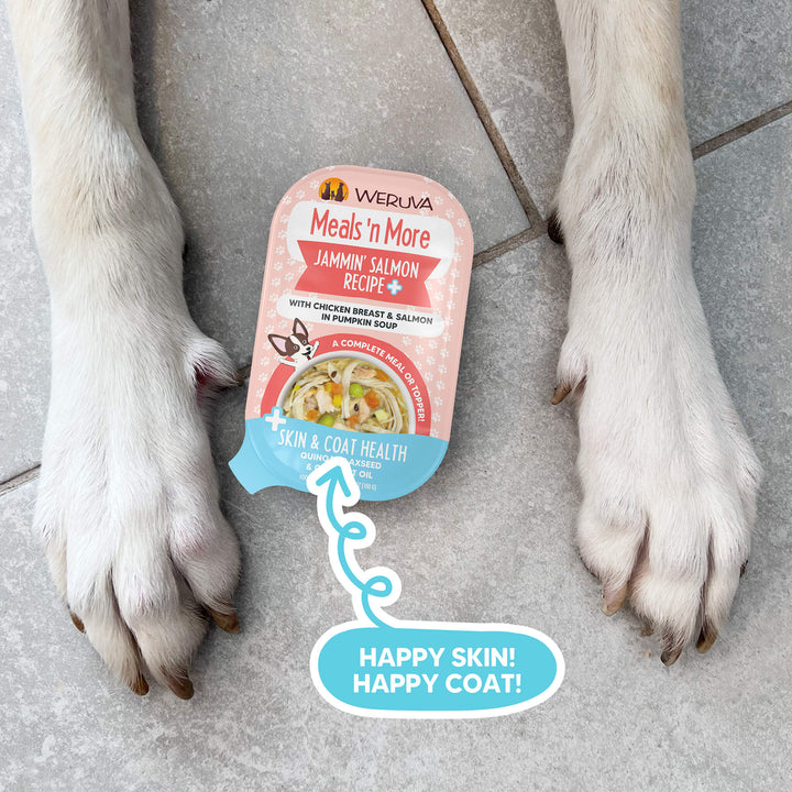 Weruva's Skin and Coat Dog Food is high in protein, low in fat and high in moisture. Meals n' More are a complete and balanced meal or can be used as a topper!
