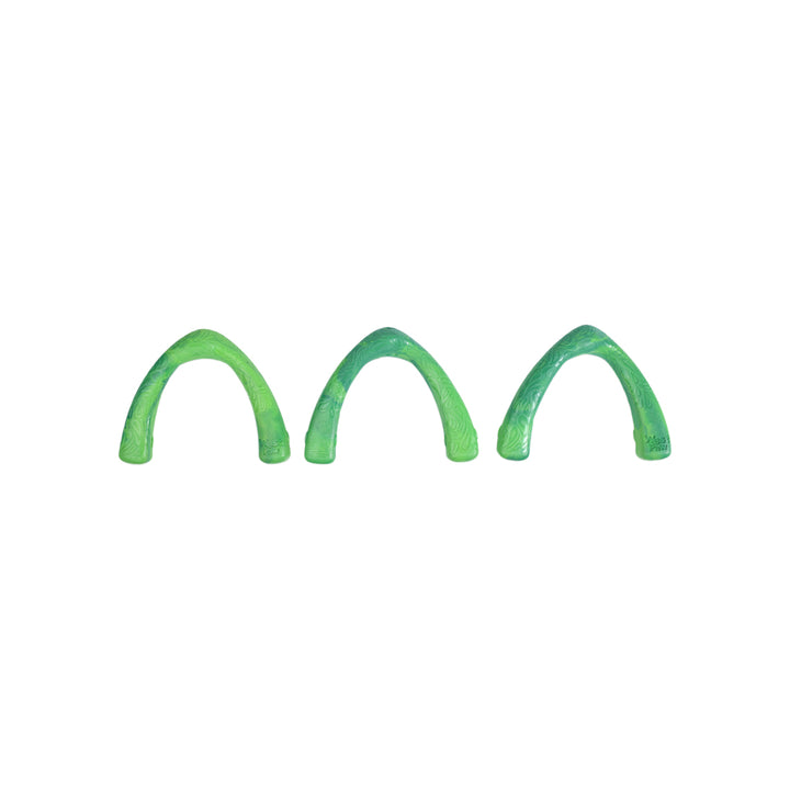 These uniquely colorful, durable toys are made 100% from recycled material. No latex, no phthalates, no BPA. Built for moderate chewers and tested for durability these floating toys offer a variety of play options for high energy dogs. They are designed for interactive and bond-forming tug play.