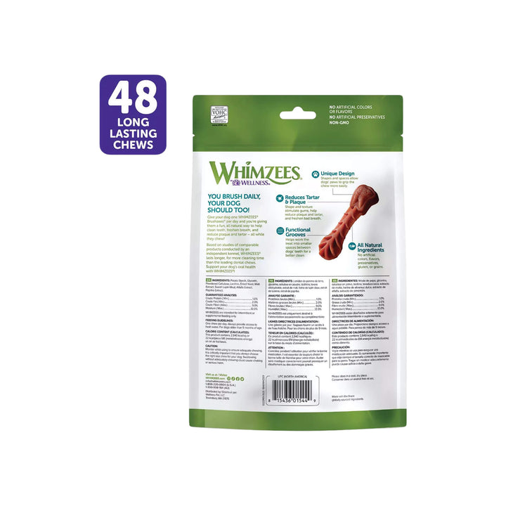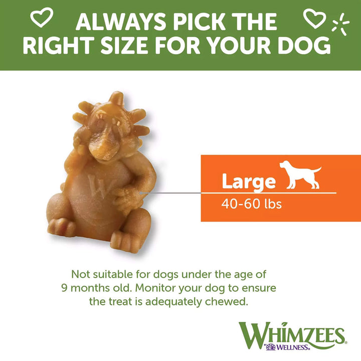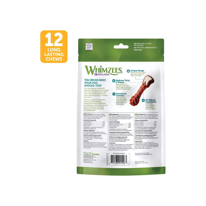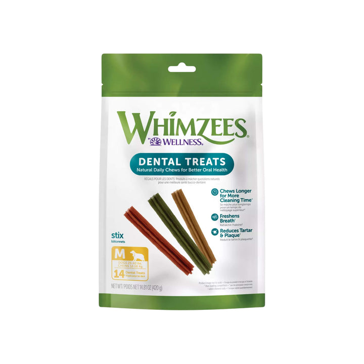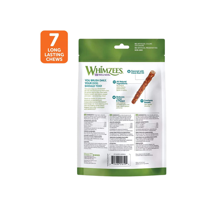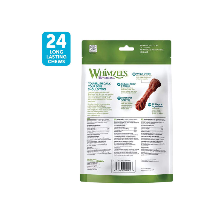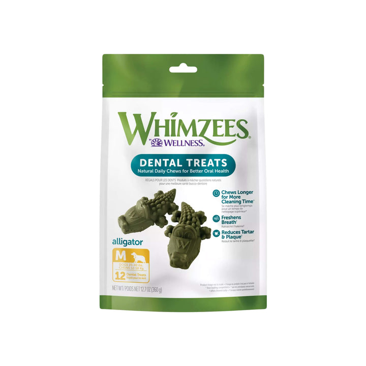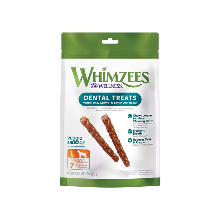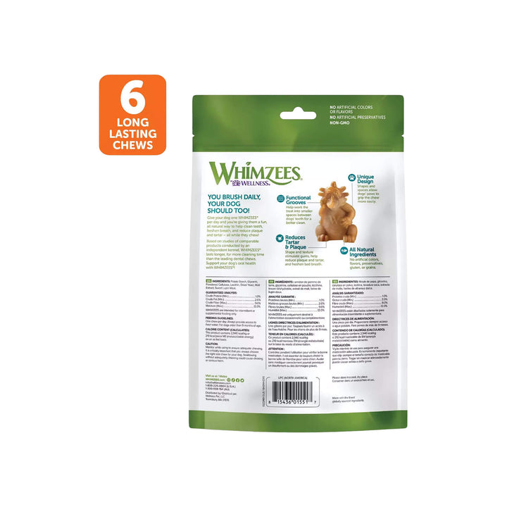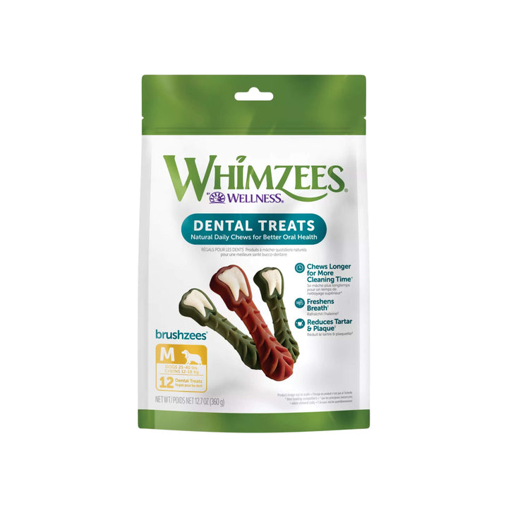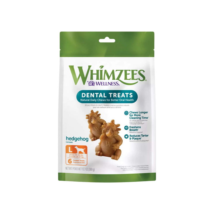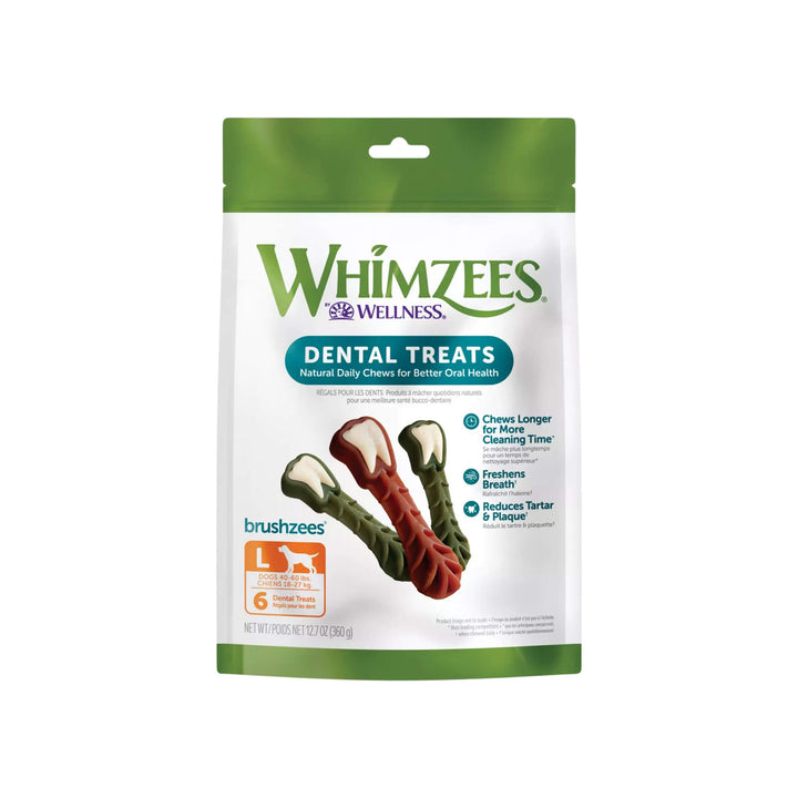 Whimzees Dental Chews are natural, gluten free and vegetarian. Made with fun shapes designed to provide your dog with dental benefits. Whimzees come in various sizes so dogs of all breeds can enjoy these dental treats.