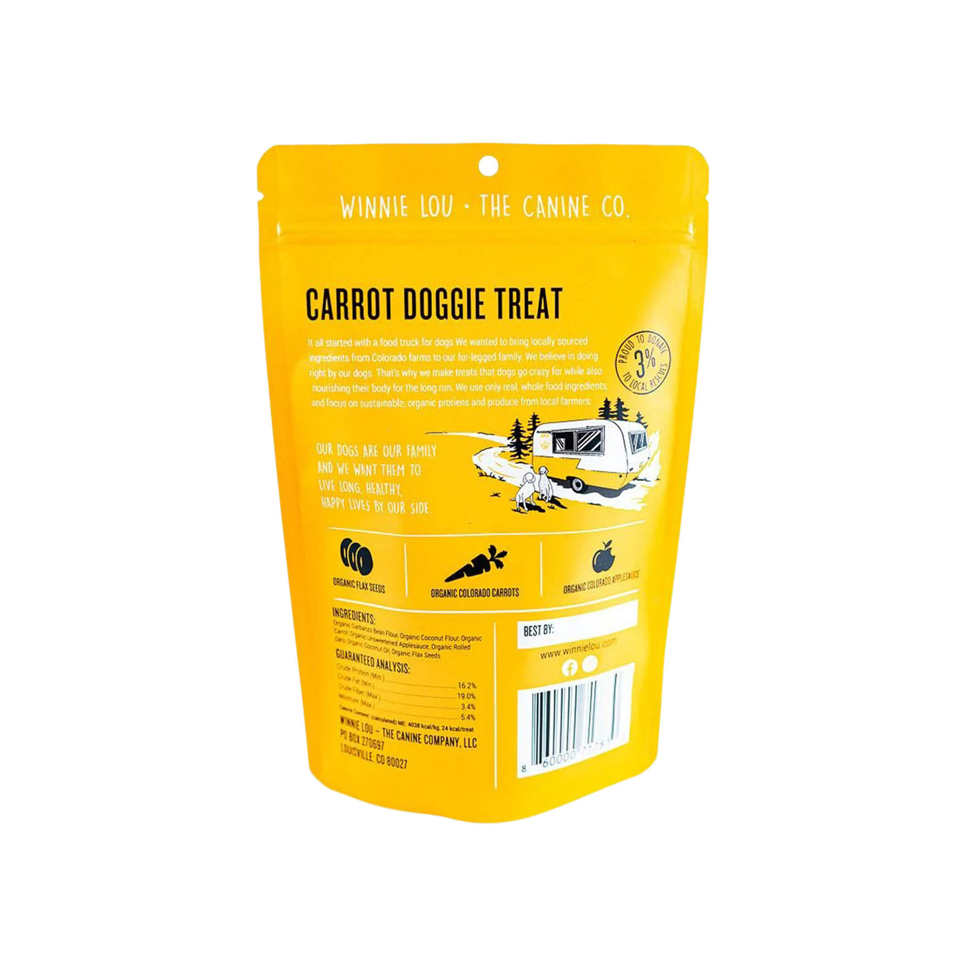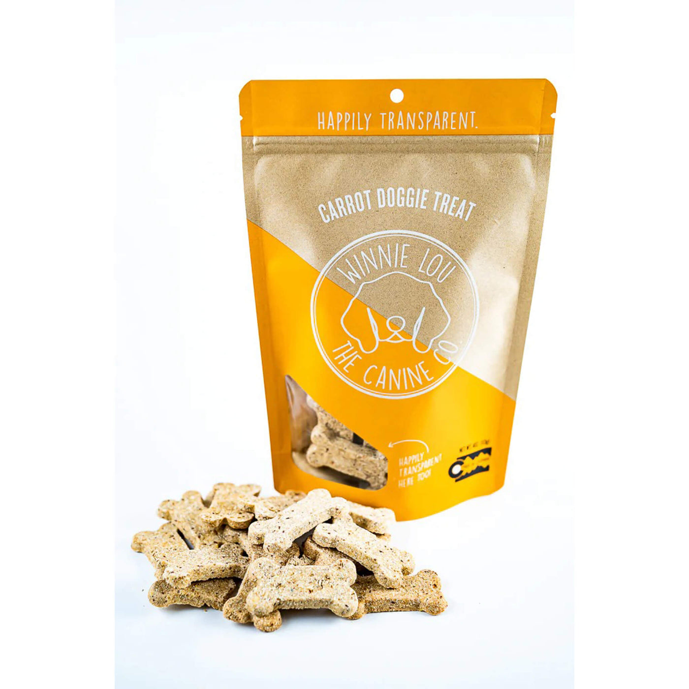 Winnie Lou Dog Treats are handcrafted in small batches using USDA organic ingredients like apples, beets, carrots, and peanut butter. These crunchy dog treats are oven-baked for the perfect snap and free from fillers, corn, wheat, or preservatives.