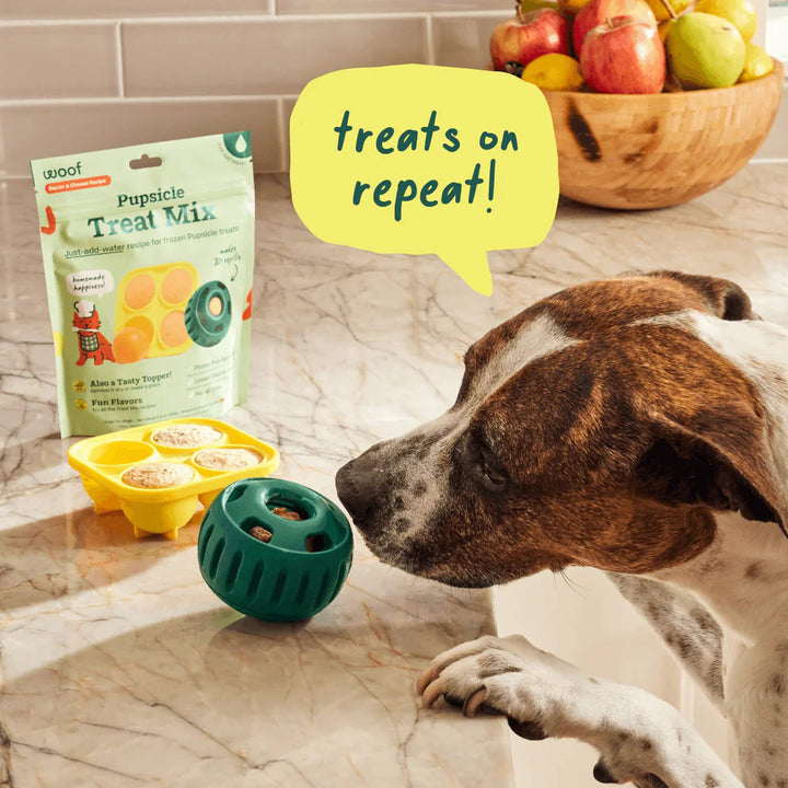 Woof Pupsicle Treat Trays for Dogs make it easy to create custom frozen snacks at home. This dog treat mold is designed to perfectly fit the Pupsicle toy, so you can craft your own refills with ingredients you trust and flavors your pup loves.