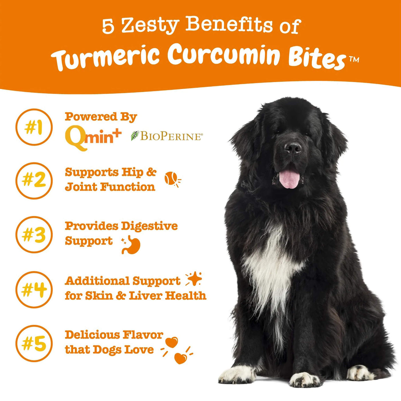 Zesty Paws Turmeric Curcumin Bites for Dogs are formulated with organic turmeric and Qmin+™ curcumin extract to promote mobility, comfort, and antioxidant support. This turmeric supplement for dogs also includes BioPerine® to help enhance nutrient absorption and bioavailability.