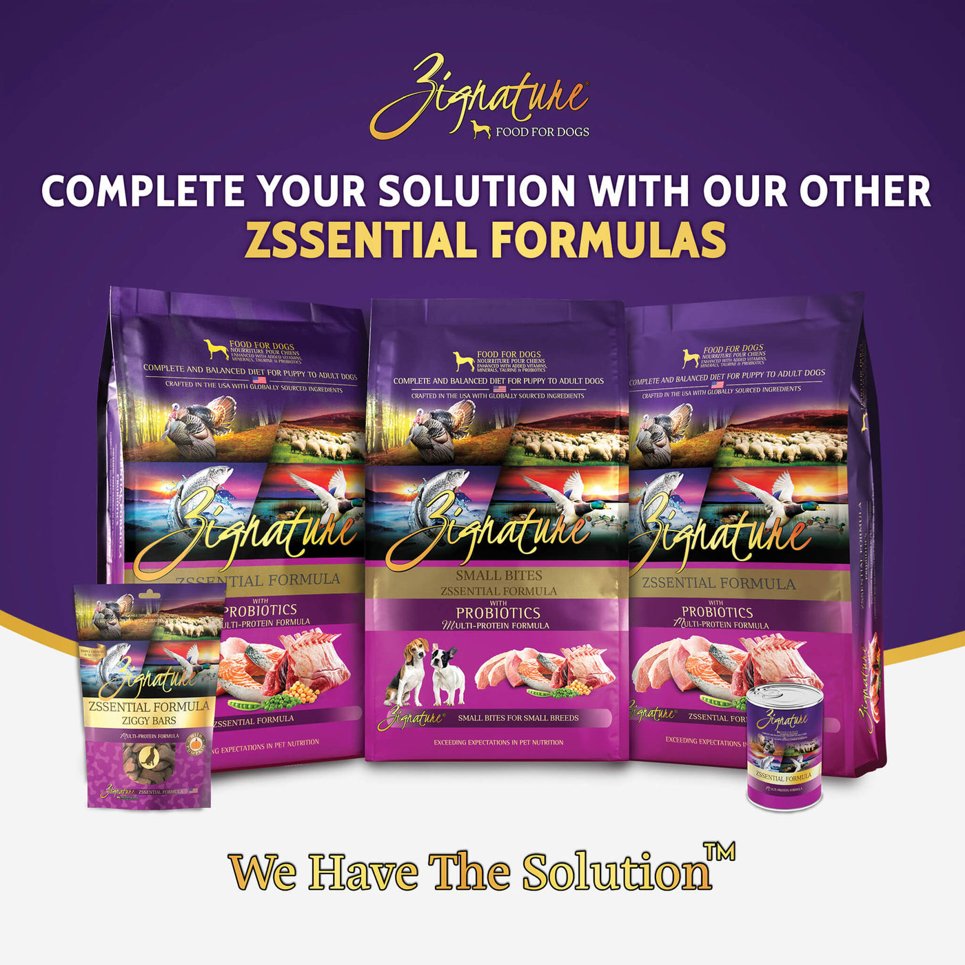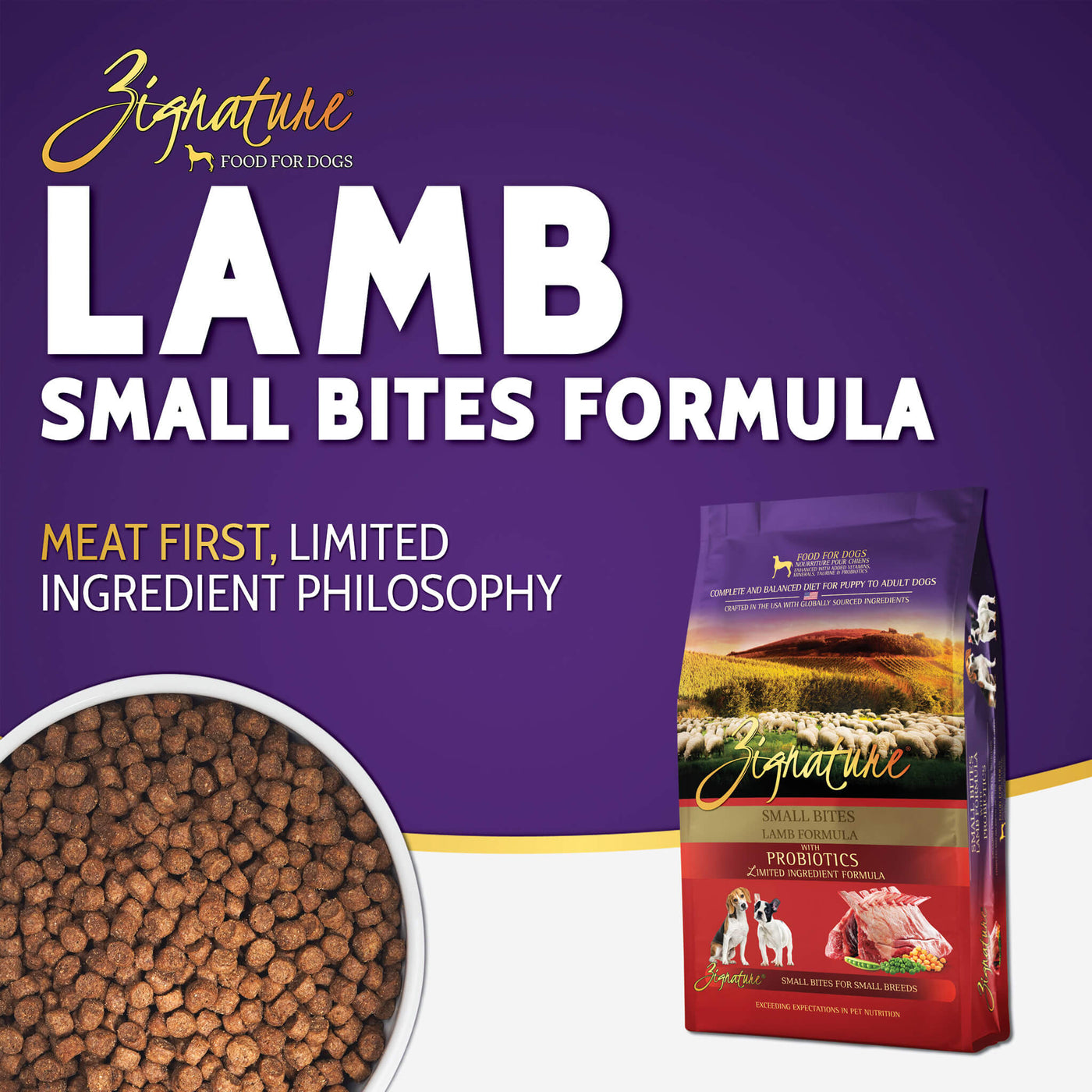 Give your small breed dog a food that was developed just for them and their unique appetites with Zignature Limited Ingredient Small Bites Dry Dog Food