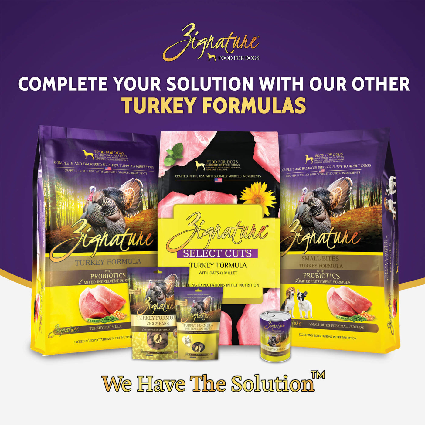 Provide your small breed dog with the same trusted, allergy-friendly nutrition found in Zignature’s original formulas, now crafted in a smaller kibble size for easier eating. Zignature Limited Ingredient Small Bites Dry Dog Food features single-animal protein recipes, wholesome ingredients, and a nutrient-rich blend of vitamins, minerals, and antioxidants to support digestion, muscle maintenance, and overall vitality. Completely free from chicken, corn, wheat, soy, and potatoes, these hypoallergenic, grain-free recipes are designed to mimic your dog’s natural diet while providing big nutrition in every small bite. Explore Zignature’s Full Selection of limited ingredient recipes designed to meet the unique needs of every dog!