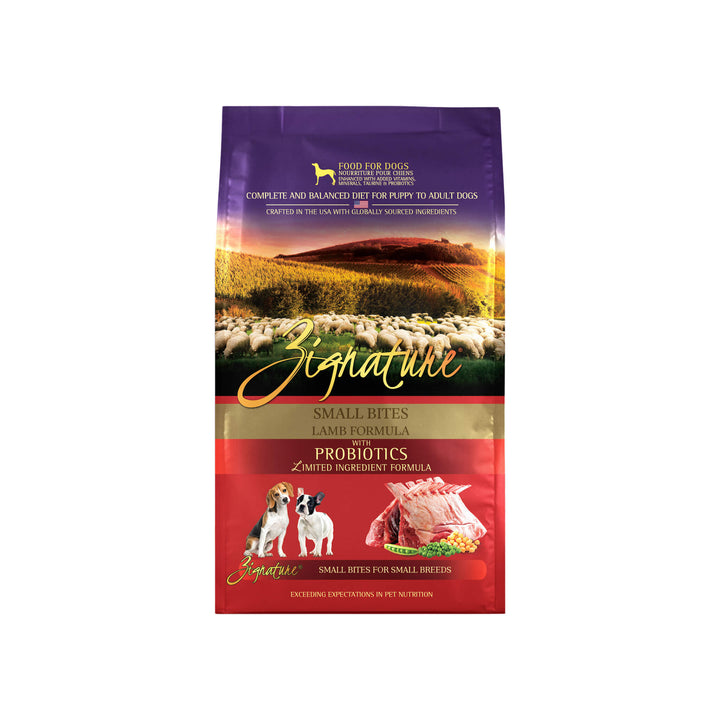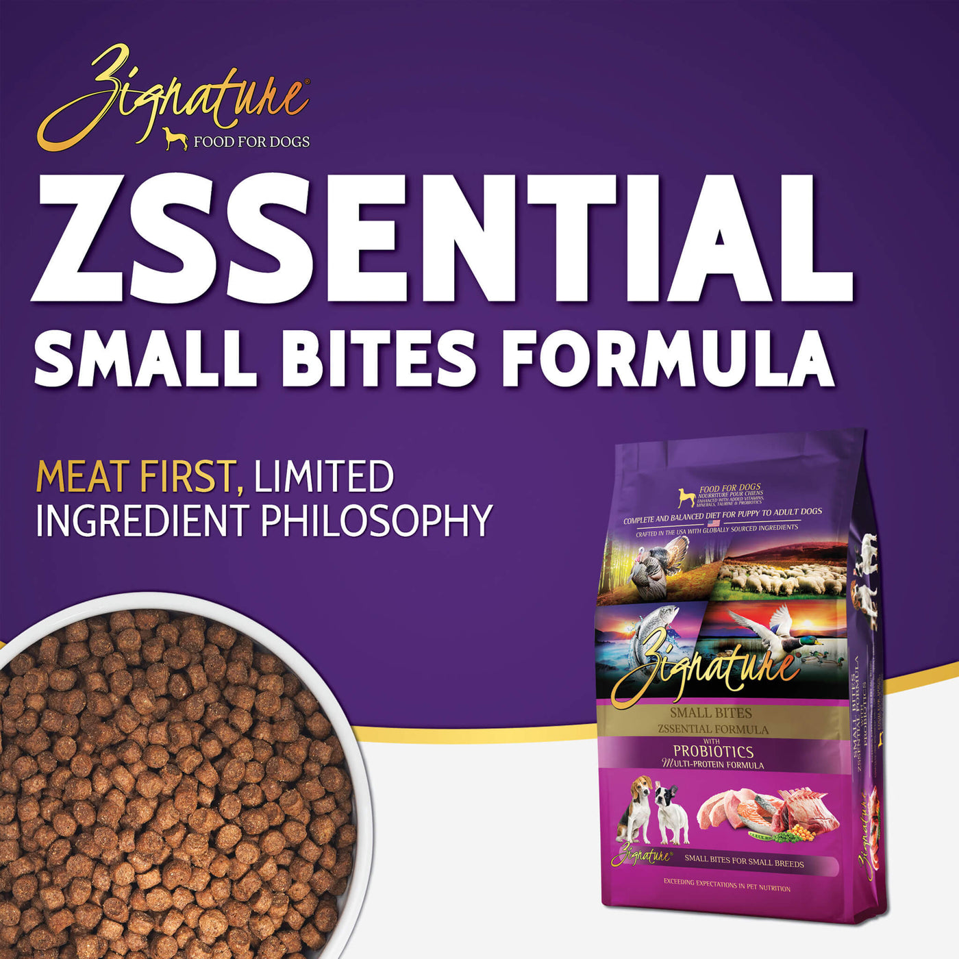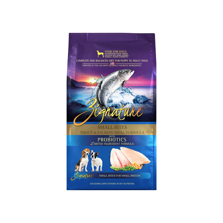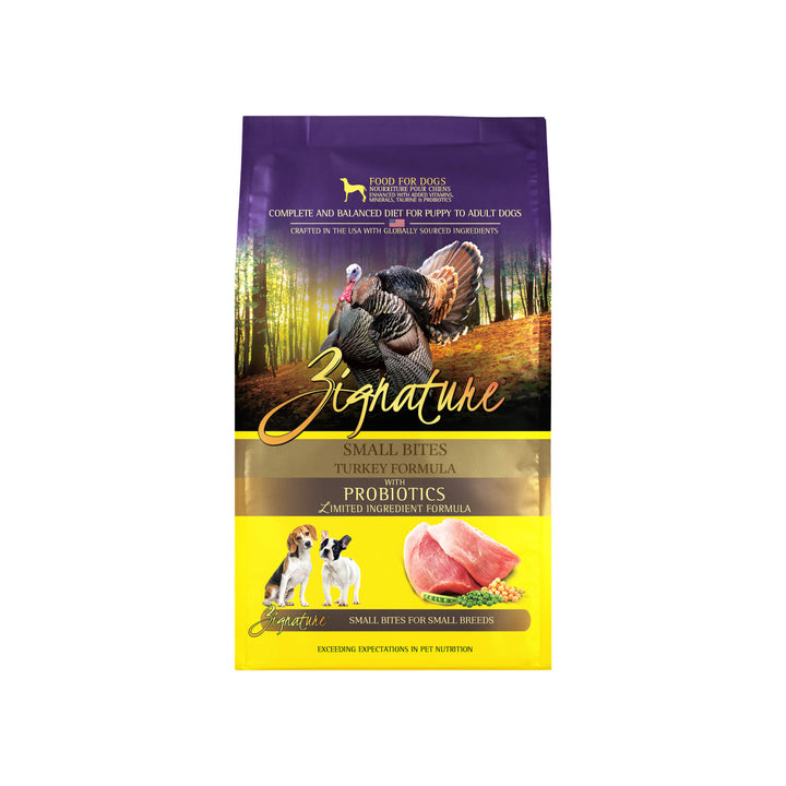 With globally sourced, nutritious and trusted ingredients Zignature Limited Ingredient Small Bites Dry Dog Foods will bring physiologically tuned nutrition to you small breed friend!