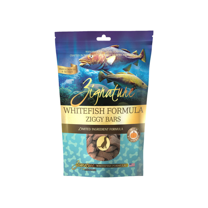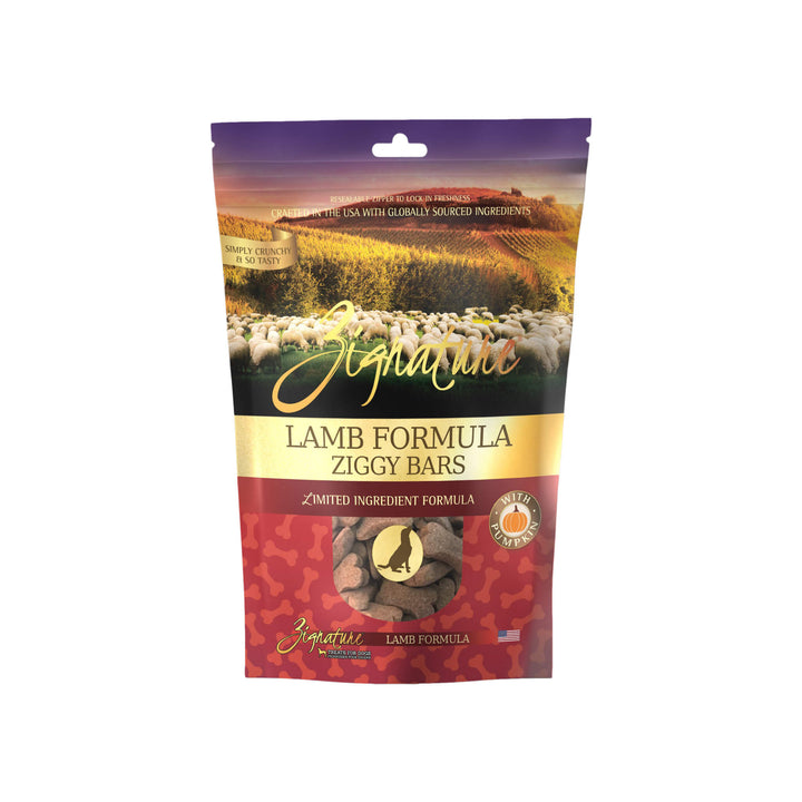 Zignature's Limited Ingredient Ziggy Bars are a rewarding treat that features animal protein as the first ingredient. With a variety of flavors to choose from, there is something for every dog! Each snack flavor corresponds with Zignature's Limited Ingredient Dry Dog food and can be used as part of a rotational diet.