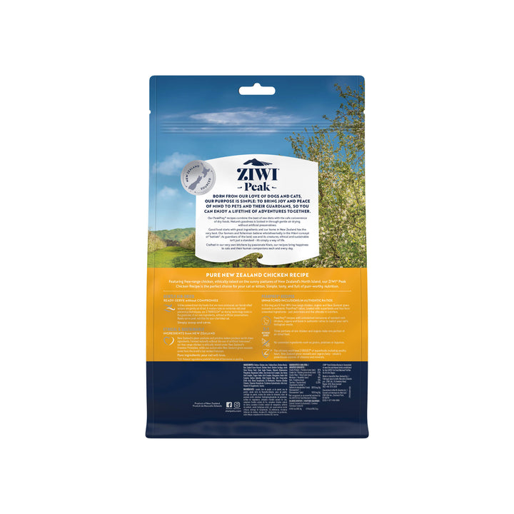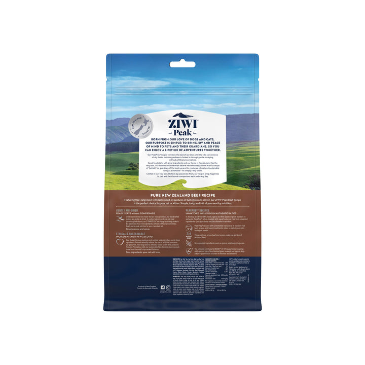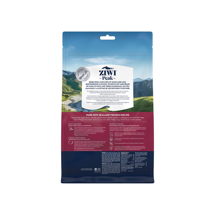 ZiwiPeak Cuisine pet food is a complete, natural balanced real-meat diet prepared with care in New Zealand beneath the Bay of Plenty's celebrated peak, Mt. Maunganui. The peak health of cats depends on the sustenance they get from real meat. ZiwiPeak products are formulated with the same balance of meat ingredients that cats would find by hunting in the wild. It's the diet that nature intended. Energize your cat with the nutritional value of a raw meat diet, with the convenience of air-dried jerky style portions.