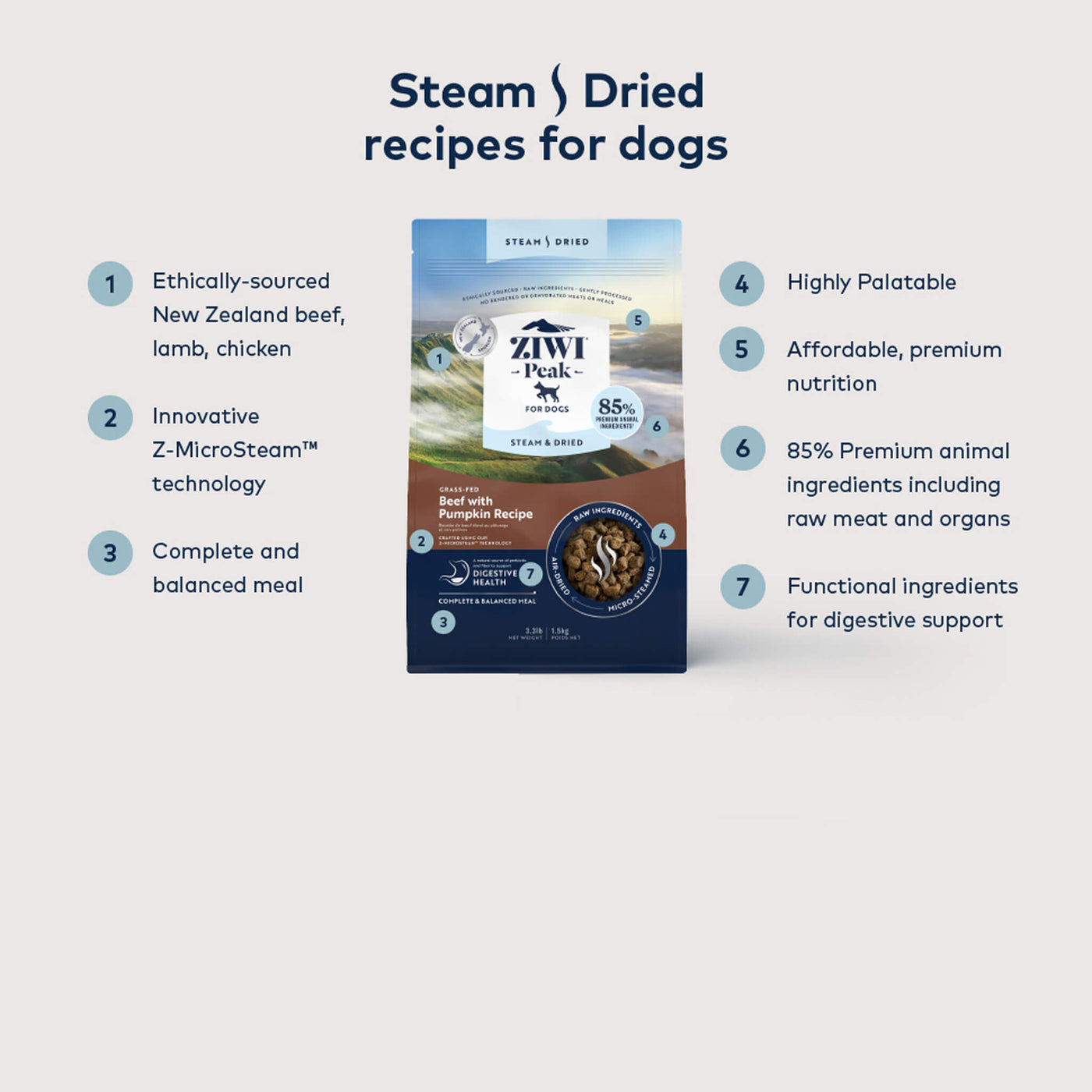 Benefits of ZiwiPeak Steam & Dried Dog Food