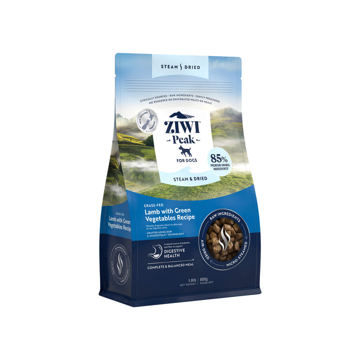 Give your dog the best of both worlds with ZiwiPeak Steam & Dried Dog Food, a nutrient-dense, raw-inspired diet featuring Z-MicroSteam™ technology to lock in natural flavor and nutrition. This innovative two-step process gently steams 85% premium animal ingredients before air-drying, creating a light, palatable texture that dogs love. Made with ethically sourced proteins, fresh fruits, and vegetables, this grain-free formula supports digestion, skin health, and overall well-being. Whether for a puppy or a senior, this balanced, ready-to-serve meal is the perfect convenient raw alternative. Upgrade your dog’s diet with ZiwiPeak Dog Food today!