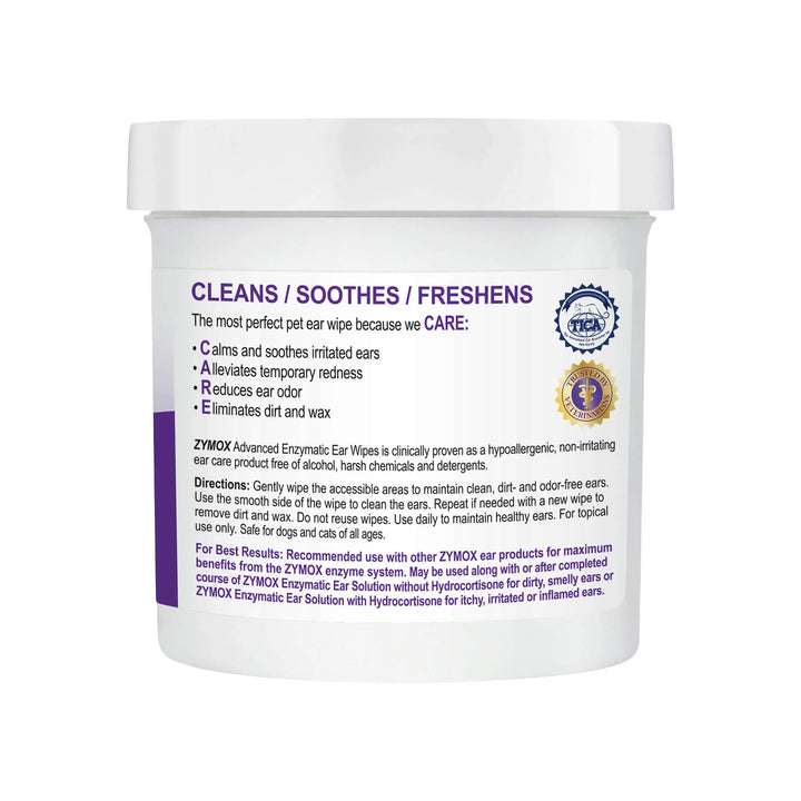 Zymox Advanced Enzymatic Ear Wipes are dog ear wipes designed to gently remove dirt, wax, and debris while supporting ear health. Powered by the LP3 Enzyme System, they help maintain a clean ear environment without irritation or harsh chemicals.