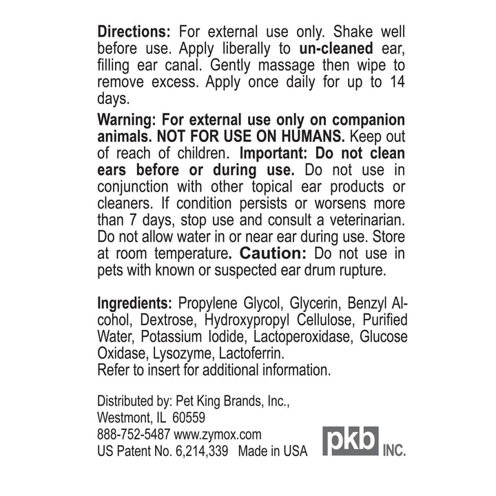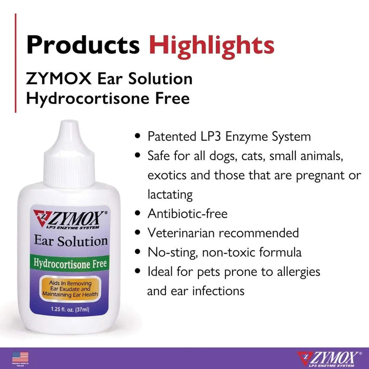 Zymox Enzymatic Ear Solution is an ear infection treatment for dogs and cats that helps manage bacterial, fungal, and yeast-related ear issues without antibiotics. Powered by the LP3 Enzyme System, it supports the natural defenses of the ear canal while soothing inflammation and irritation.