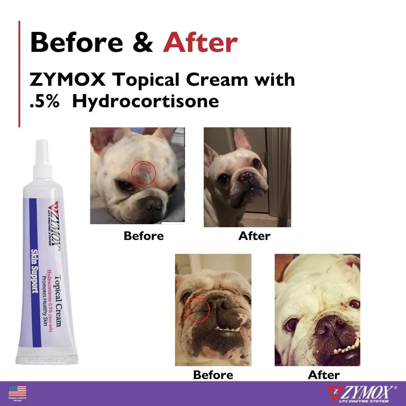 Zymox Topical Cream with Hydrocortisone is a hydrocortisone cream for dogs and cats designed to relieve itching, inflammation, and minor skin irritations. Powered by the LP3 Enzyme System, it helps calm hot spots, wounds, and dermatitis while promoting natural healing.